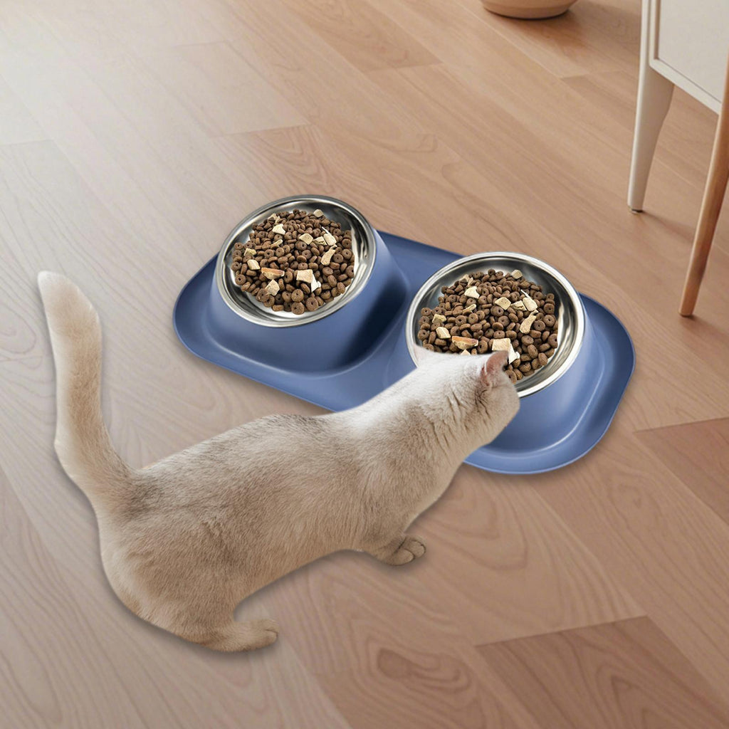 Maxbell Cat Water and Food Bowl Feeder Travel Feeding Dish for Pets Small Dogs Puppy Blue