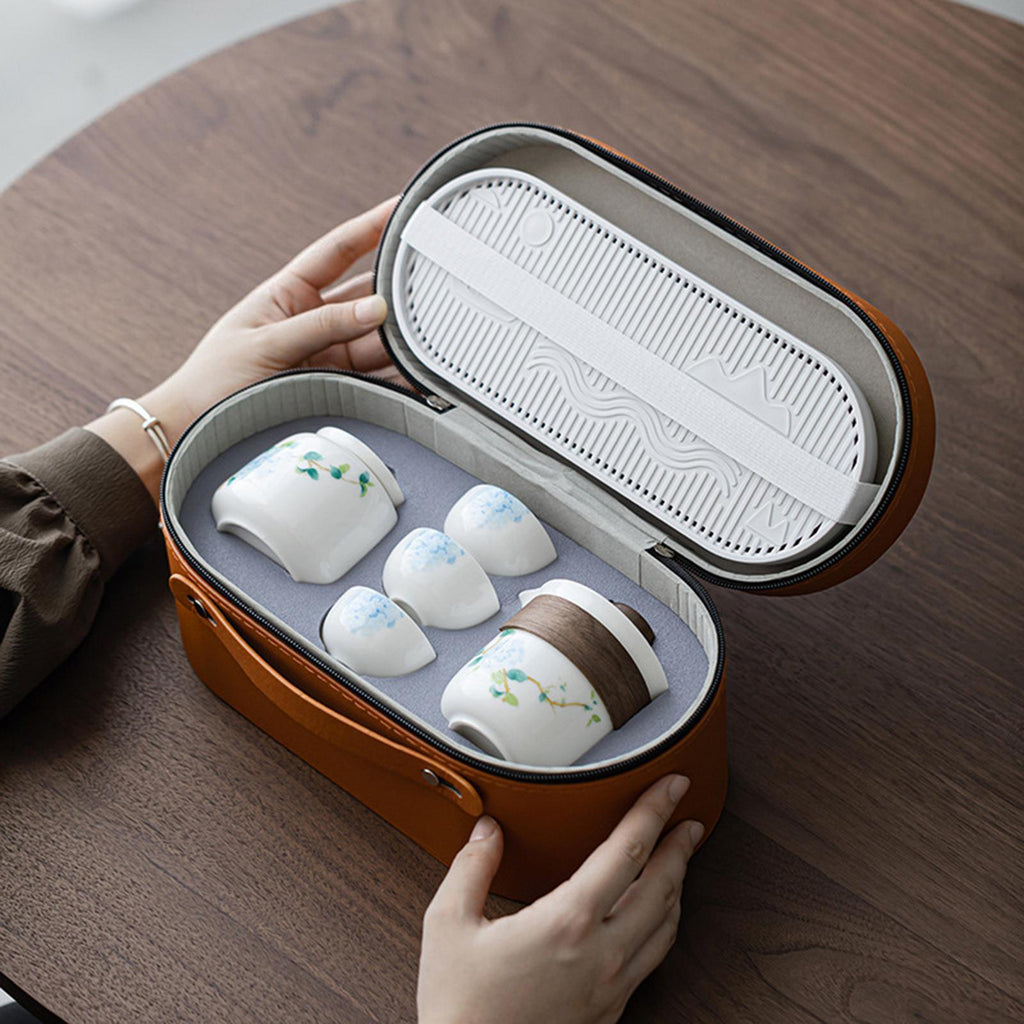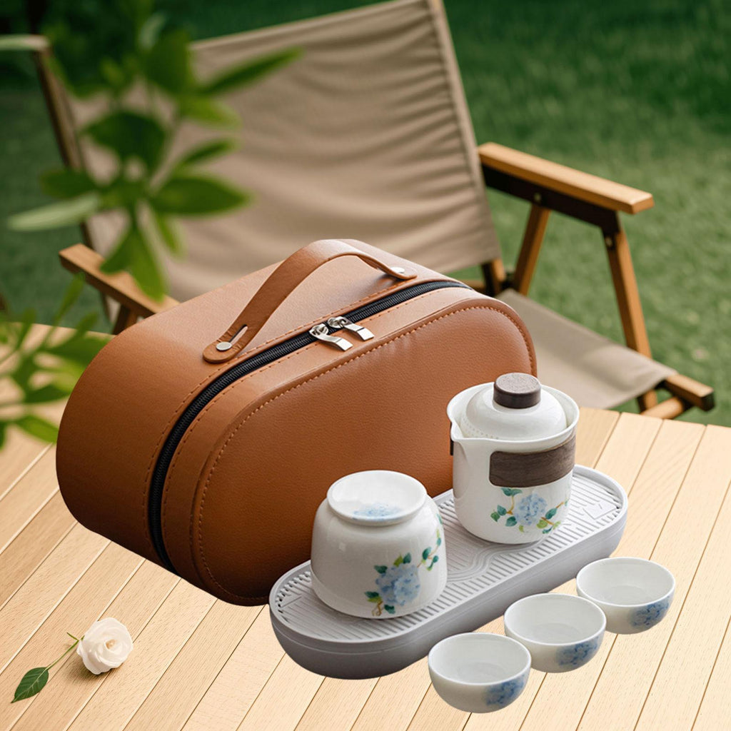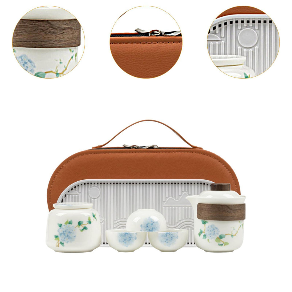【Package Includes】: Portable Tea Set with includes 1 teapot, 1 tea canister, 1 tray, and 3 tea cups
