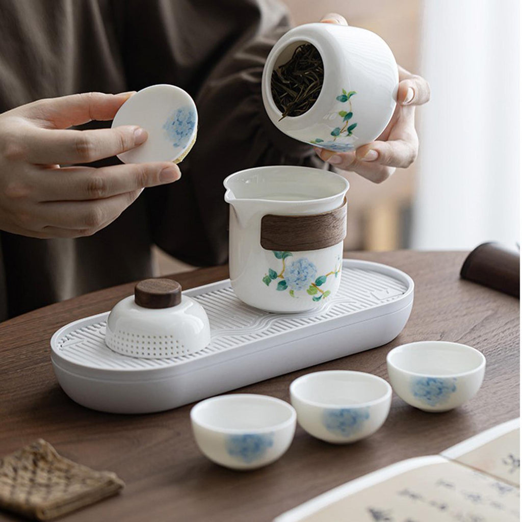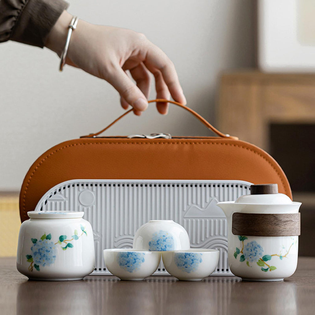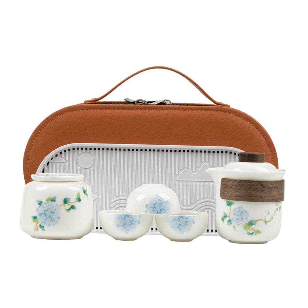 【Package Includes】: Portable Tea Set with includes 1 teapot, 1 tea canister, 1 tray, and 3 tea cups