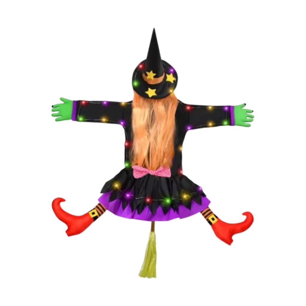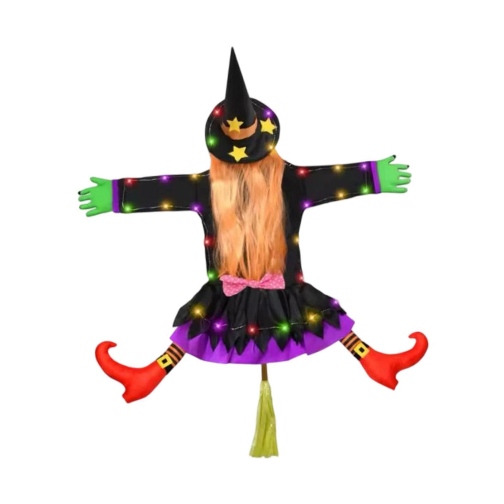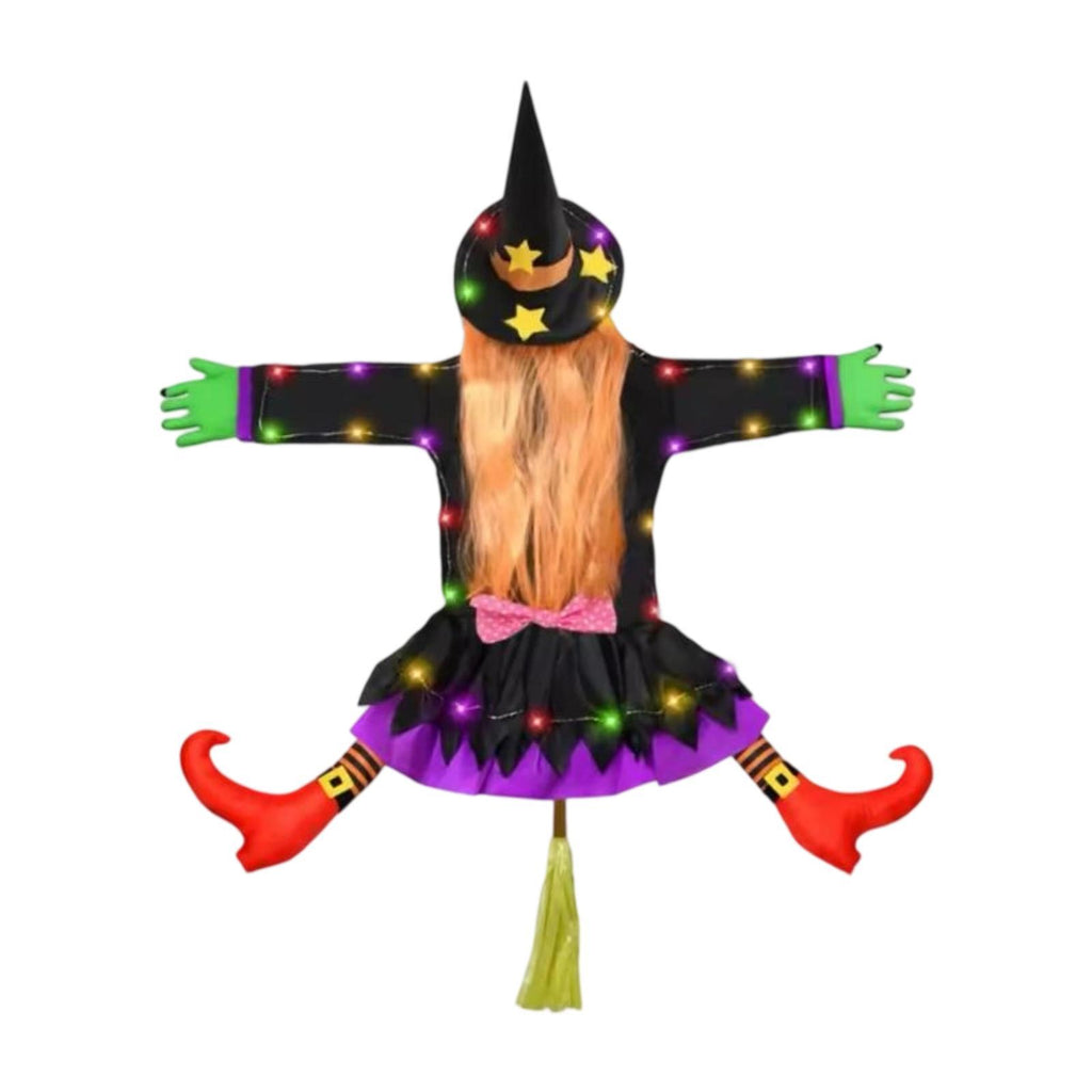 【Interesting Design】: Halloween crashing witch into tree equipped with an upright hat, smooth long hair, striped socks, pointed shoes and a black shawl, this prop looks very lively and lively