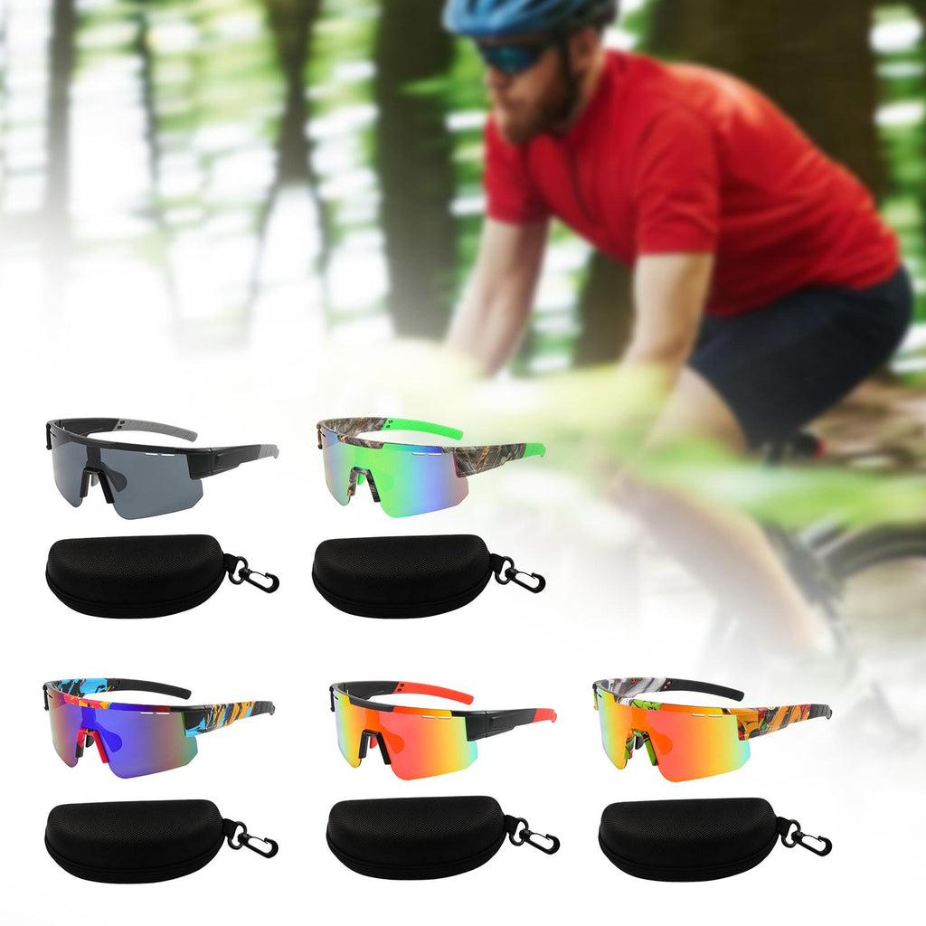 【Stylish and Functional】: These cycling sunglasses are not only fashionable but also practical. They feature a large frame design with colorful reflective lenses, great for outdoor sports activities. The glasses are designed to reduce wind resistance, keep out dust and small stones, effectively minimizing the impact of foreign objects on your eyes.