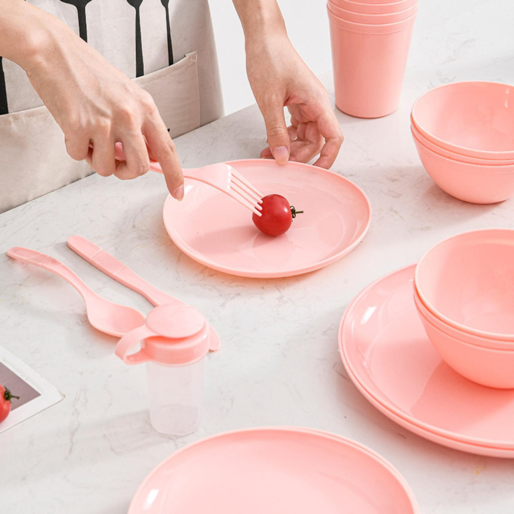 【Material】: Made from quality PP, this dinnerware set is designed to withstand the rigors of outdoor use while being lightweight and easy to carry