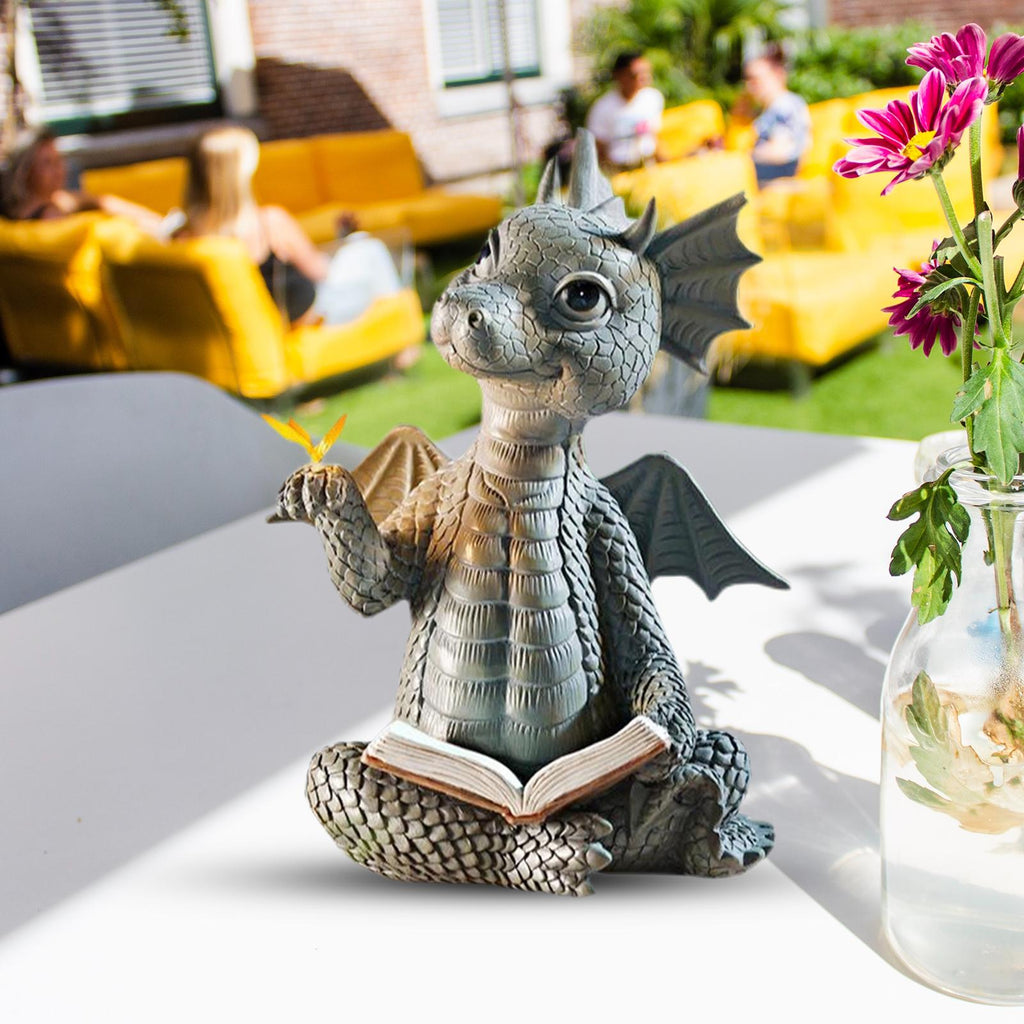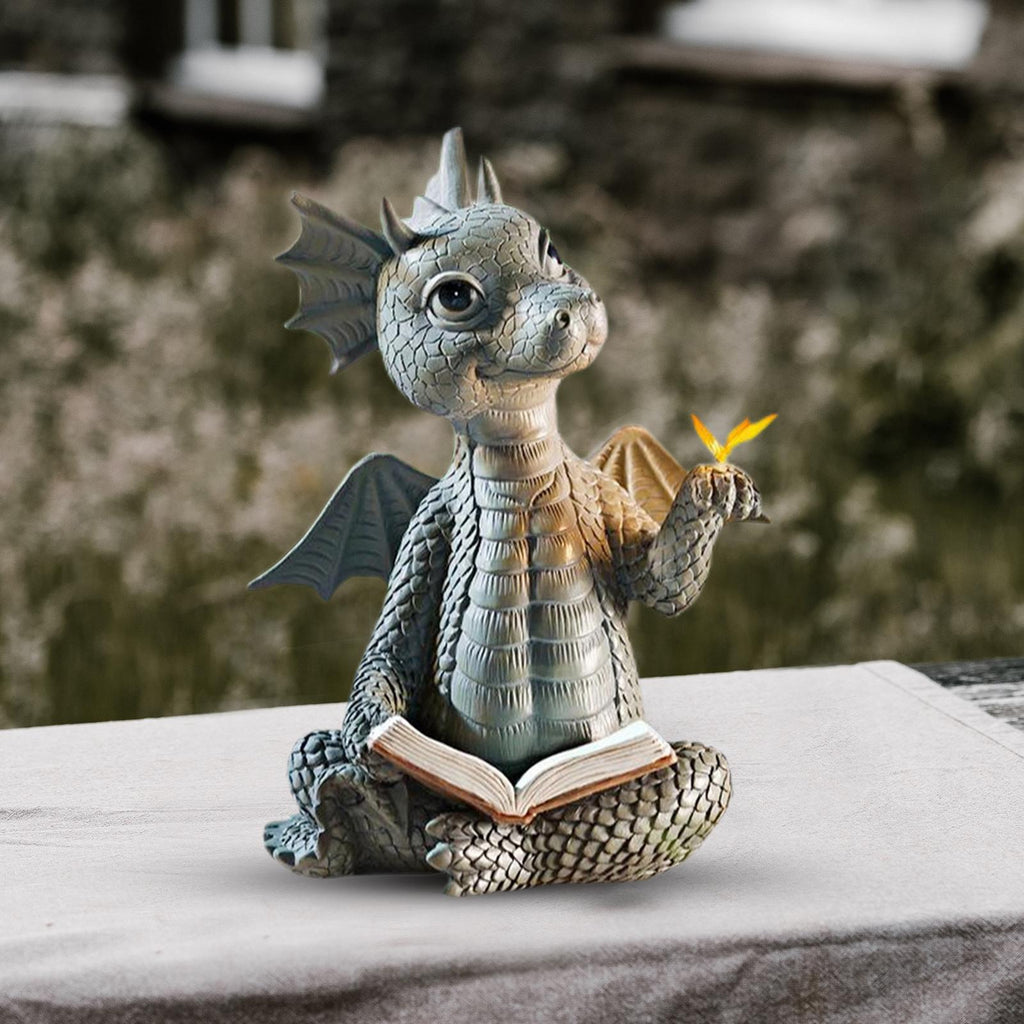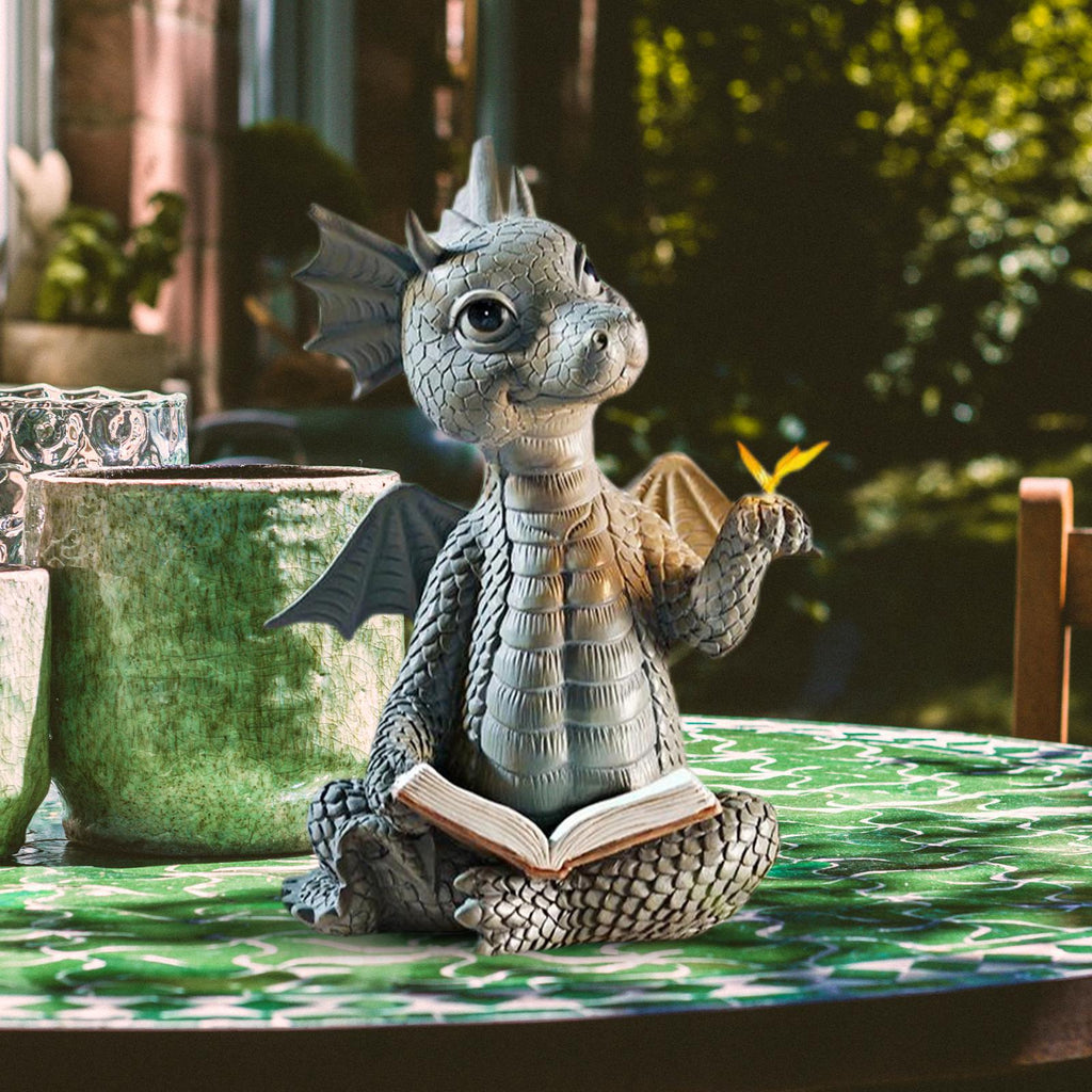 - This Small Dragon Reads a Book Statue is made of resin, stone surface design, vintage decorations.