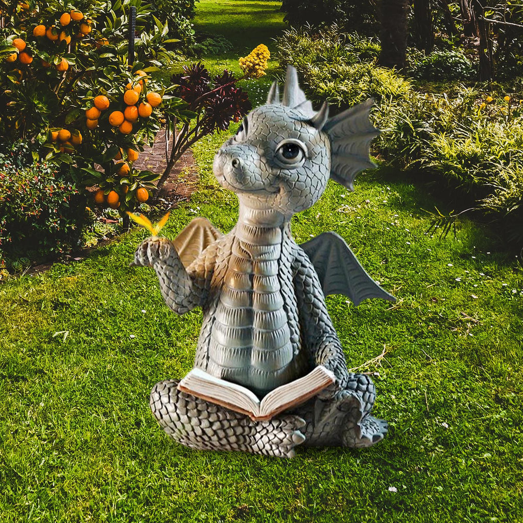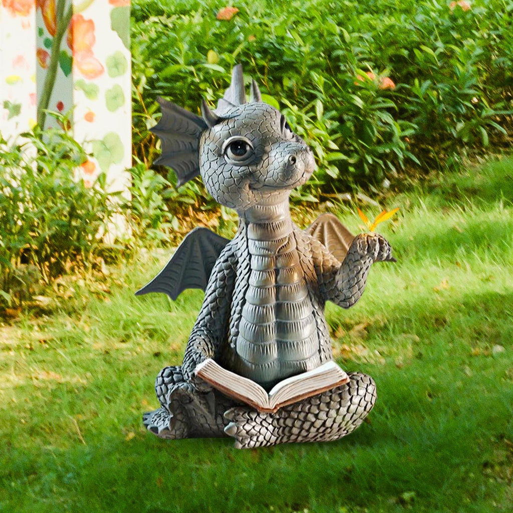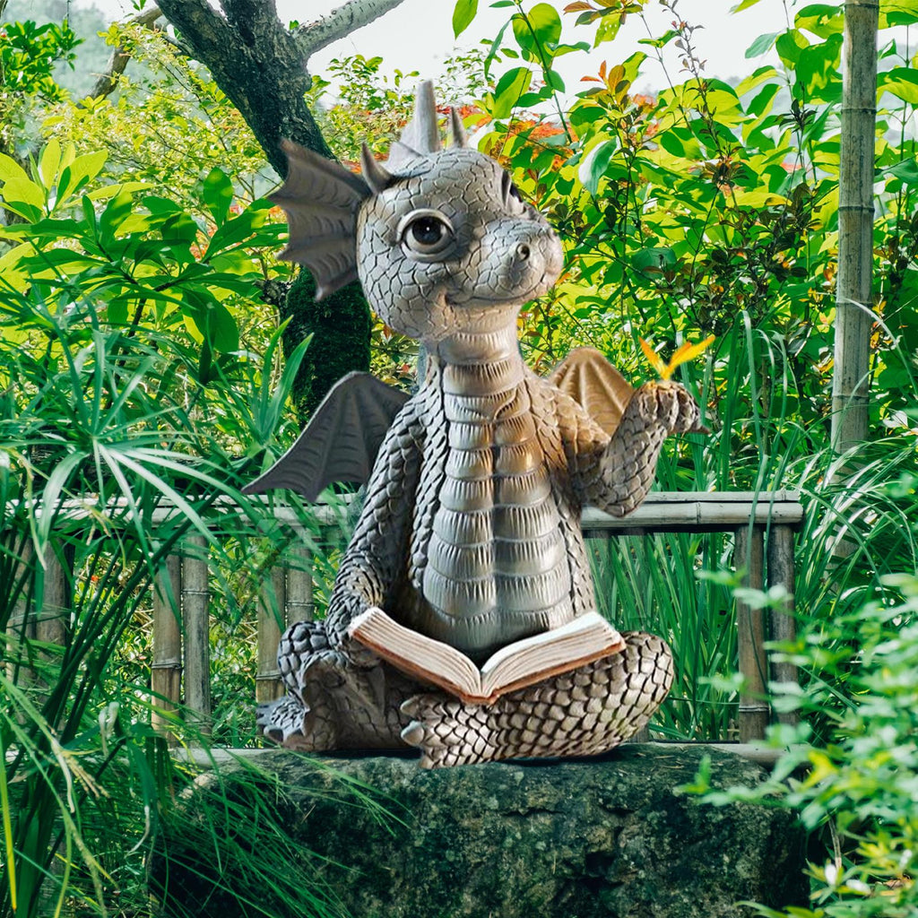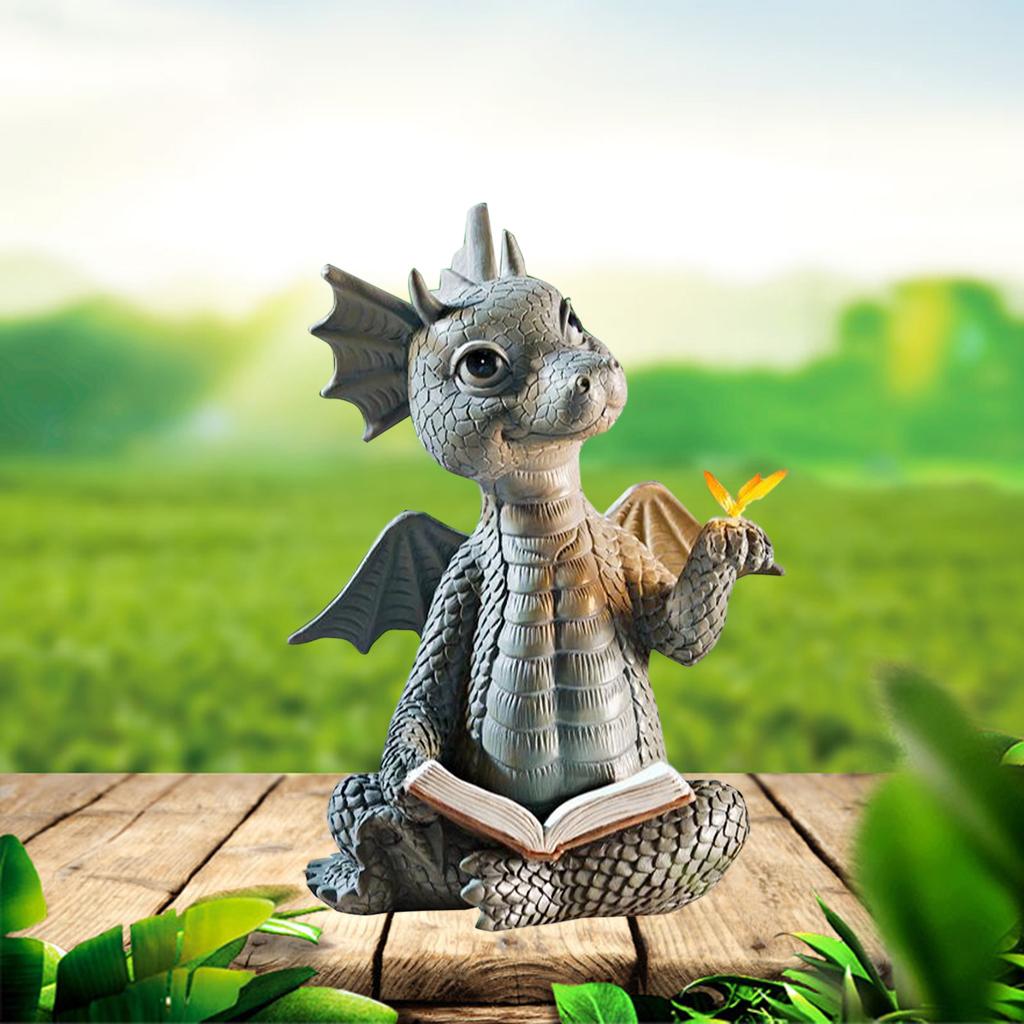 - This Small Dragon Reads a Book Statue is made of resin, stone surface design, vintage decorations.