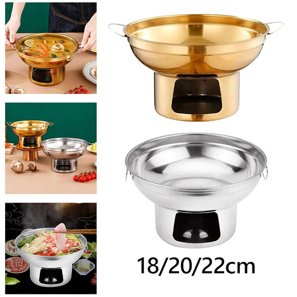 Maxbell Double Handled Lidless Thai Hot Pot Shabu Hot Pot for Hiking Kitchen Outdoor Silver S