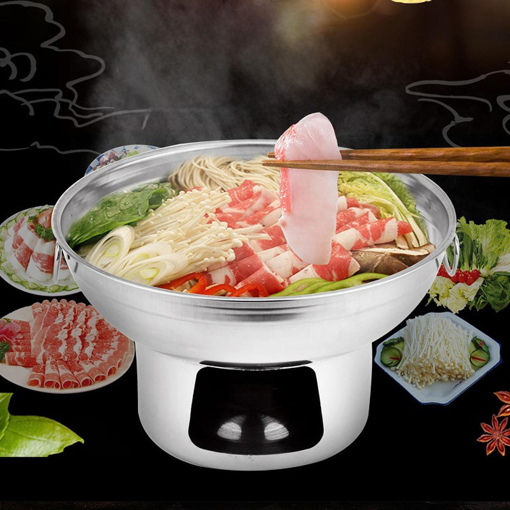 【Convenient and Practical】: This hot pot suitable for shabu shabu, iron plate, or hot pot. No pot lid allows you to monitors the cooking progress, and the strong bottom ensures thermal conductivity efficiency