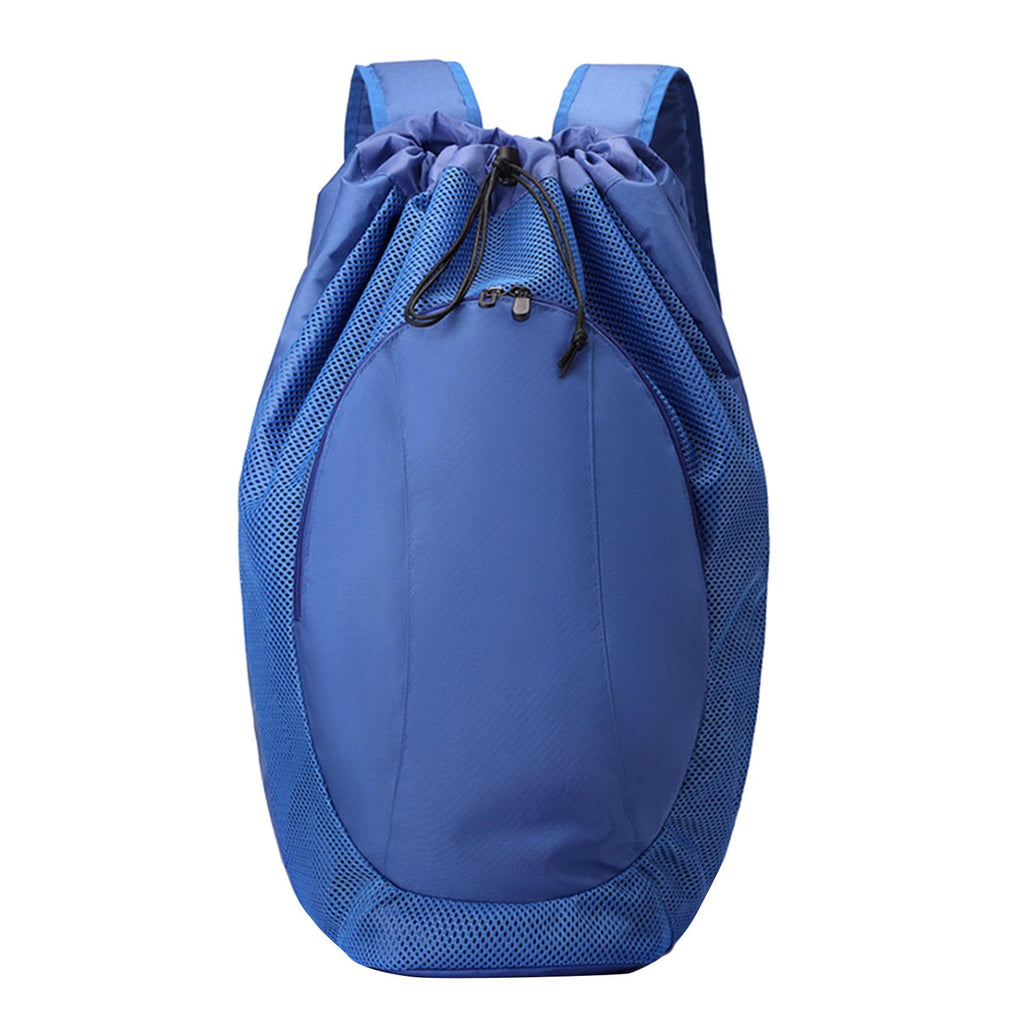Maxbell Drawstring Backpack Fitness Drawstring Gym Bag for Shopping Badminton Tennis Blue