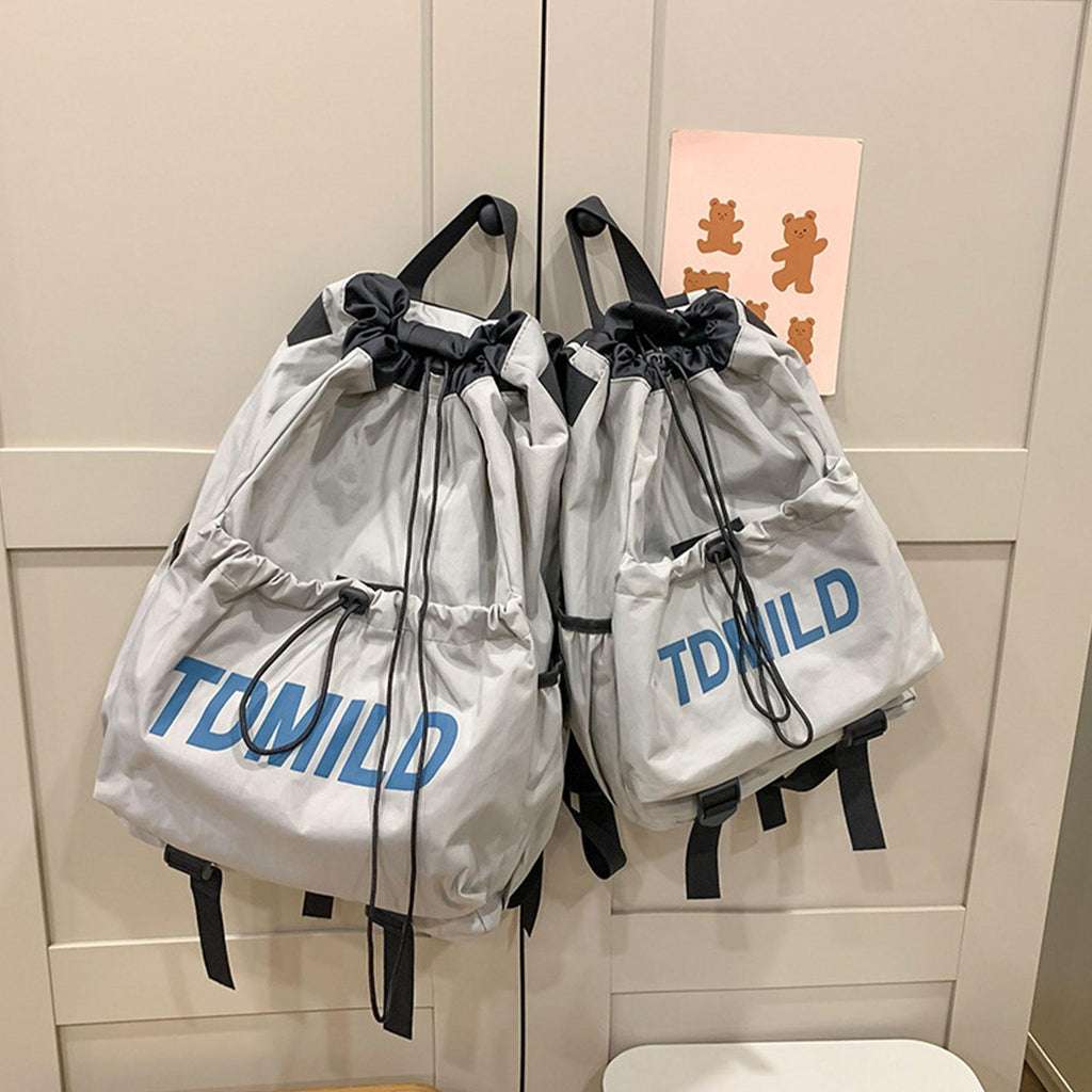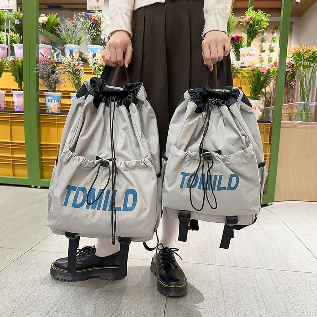 Maxbell Drawstring Backpack Large Capacity Fashion Gym Sack for Gym Outdoor Shopping Gray