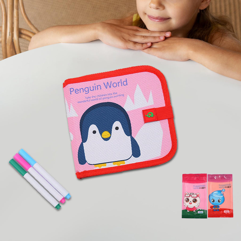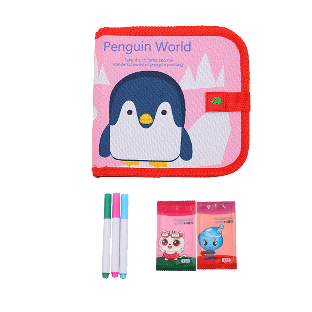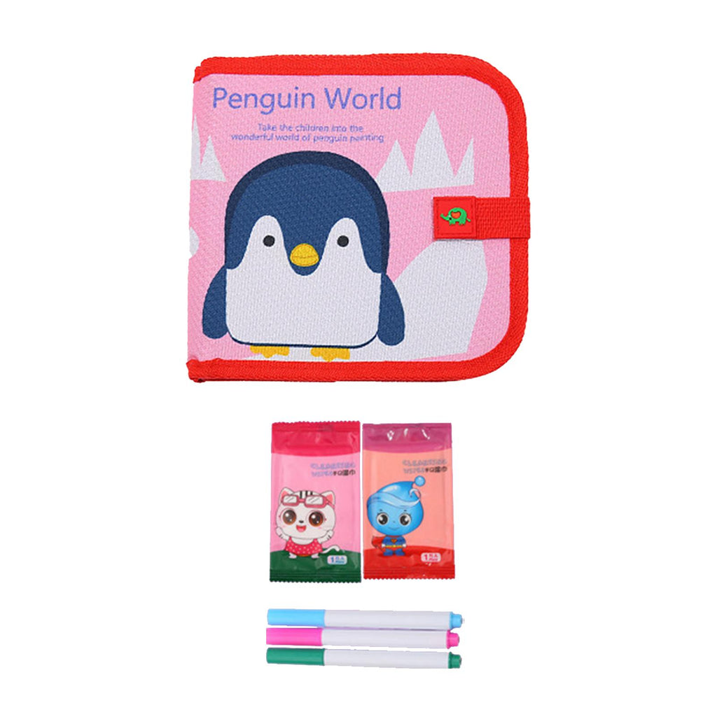Maxbell Erasable Doodle Book Set Portable Reusable Drawing Book for Game Travel Road Penguin