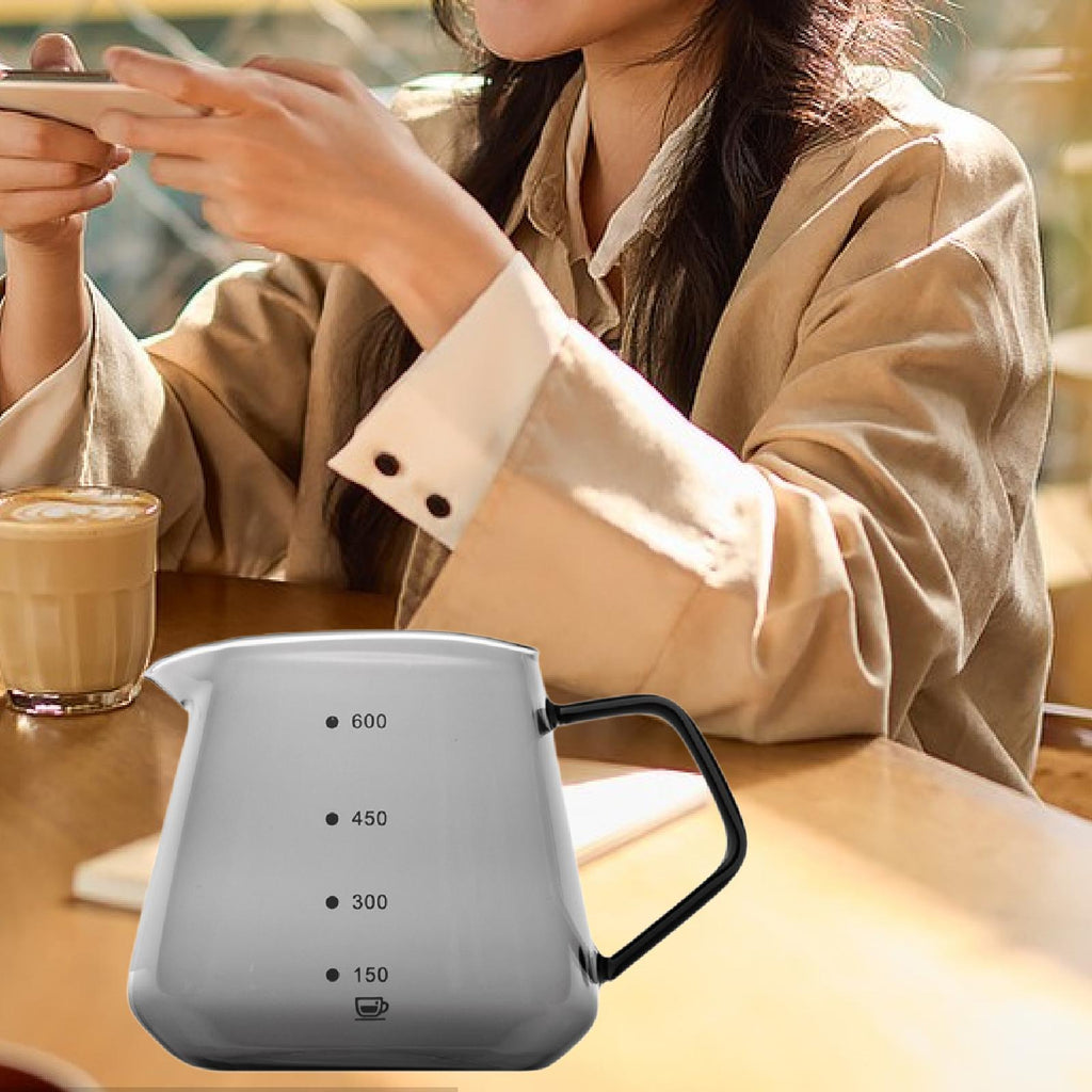 【Simple and Easy】: Frothing pitcher with pour spout and ergonomic design, easy to use, is great for experienced coffee lovers alike