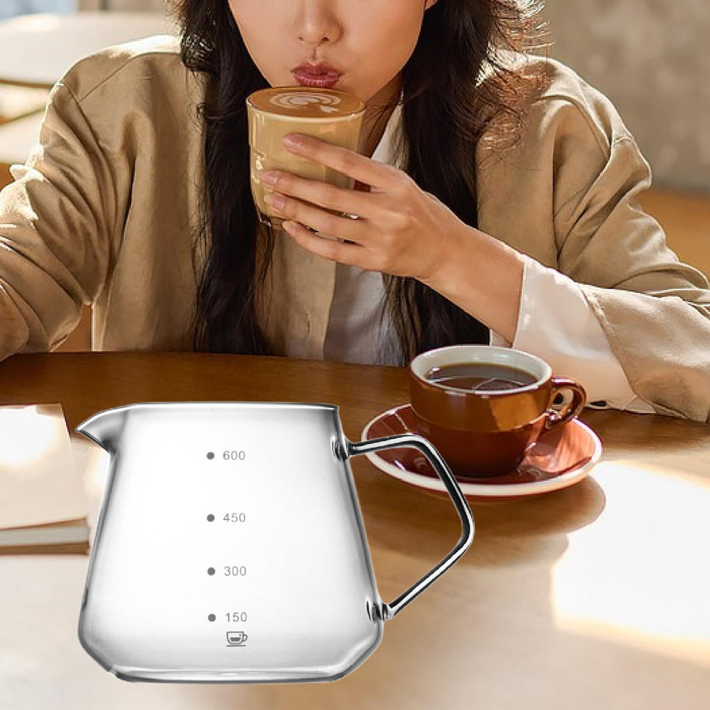 【Convenient Size】: With a 600ml capacity, the glass cup is for serving coffee, tea, water, milk, and more