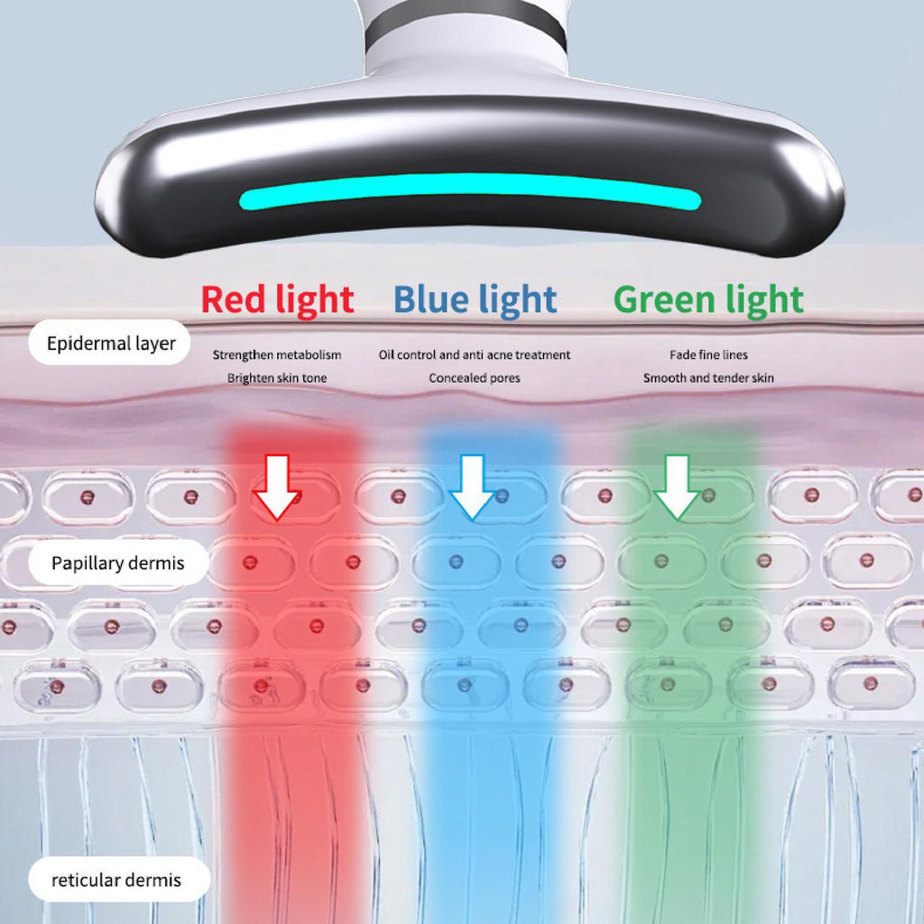 【3 Gears Modes】 Face neck beauty device features 3 different skincare effects suitable for various skin types. Each color light modes provides a unique to cater to your specific skincare needs
