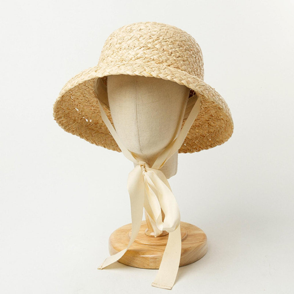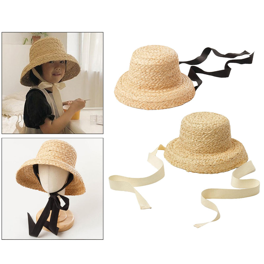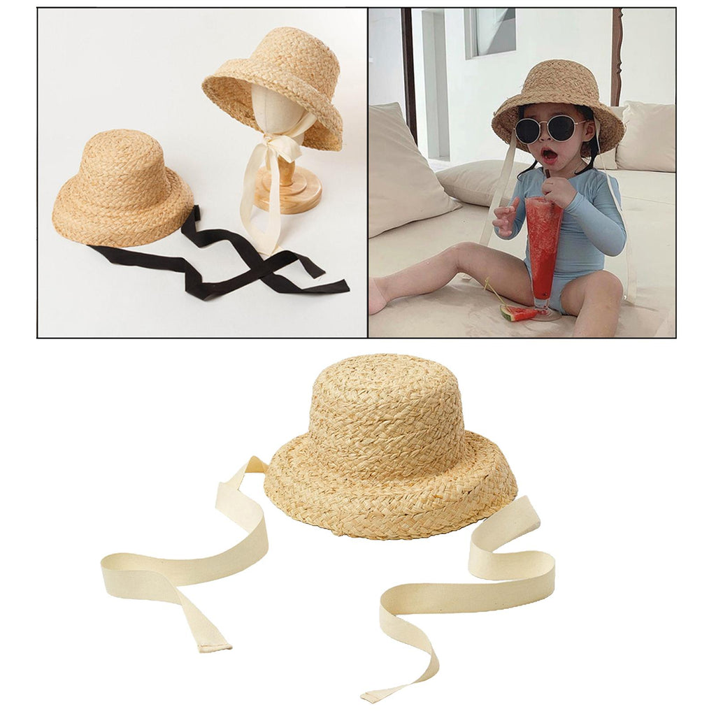 Maxbell Fashion Kids Straw Hat Summer Travel Sun Hat w/ Adjustable Tie White Tie