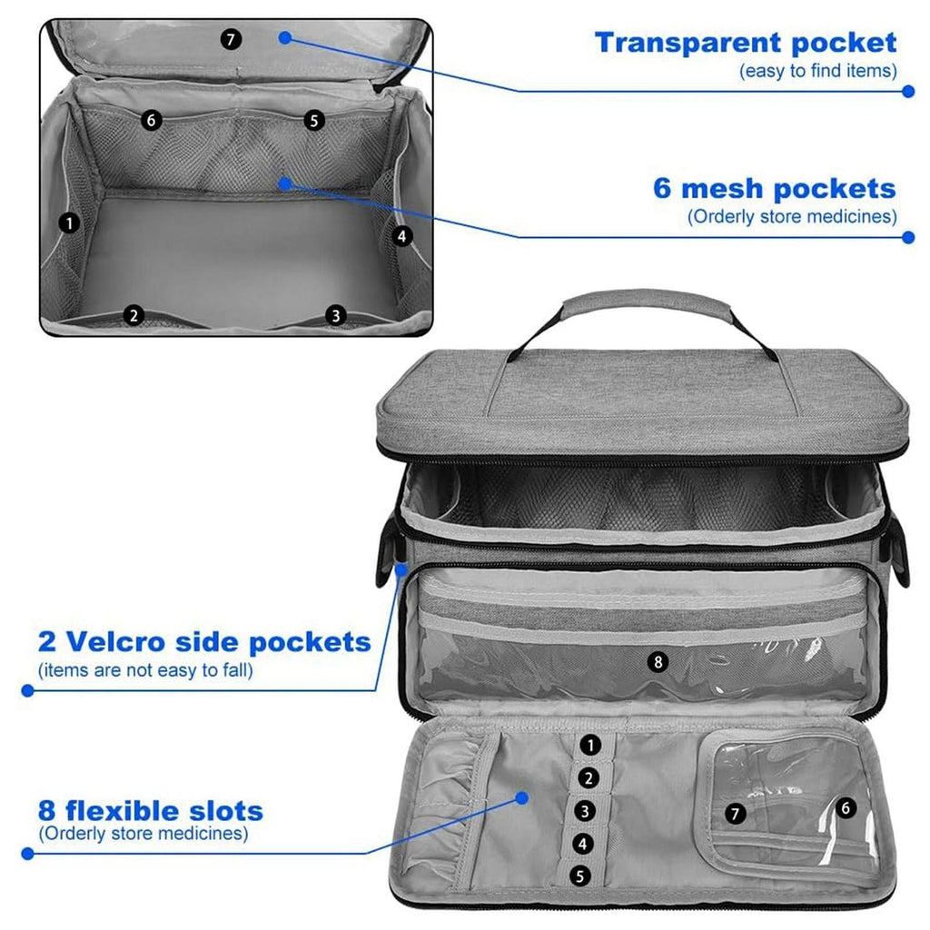 【Multifunctional】: The Medical Organizer, front compartment has 1 visible pocket and 6 elastic loops with bottom slots for storing medical tools. 4 exterior pockets provide extra space to carry what you want