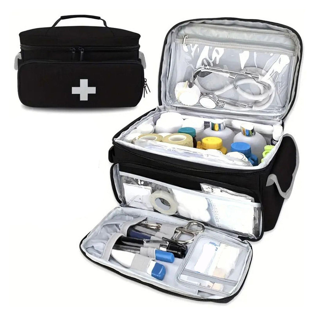【Large Capacity】: The Medical Storage Bag, main compartment has 6 mesh pockets, suitable for carrying emergency medical supplies. 29cmx19.5cmx17.5cm/11.42inchx7.68inchx6.89inch in size