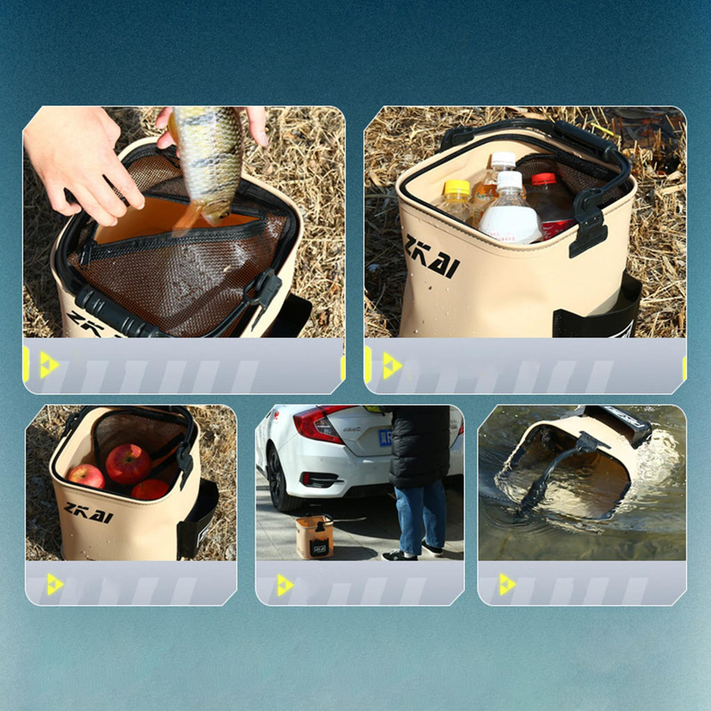 【Material】This outdoor fishing bucket is EVA material, bottom thickened, water storage bucket, which is wear resistant and has a long use time.