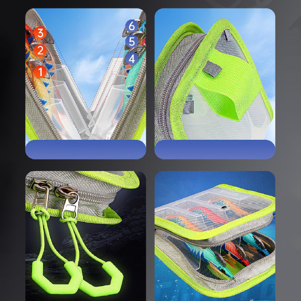 【Efficient Storage Design】: Fishing Lure Bag features a double layer, six compartment structure with triangular cross storage and serrated interlocking design, maximizing space efficiency and organization