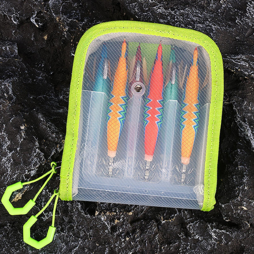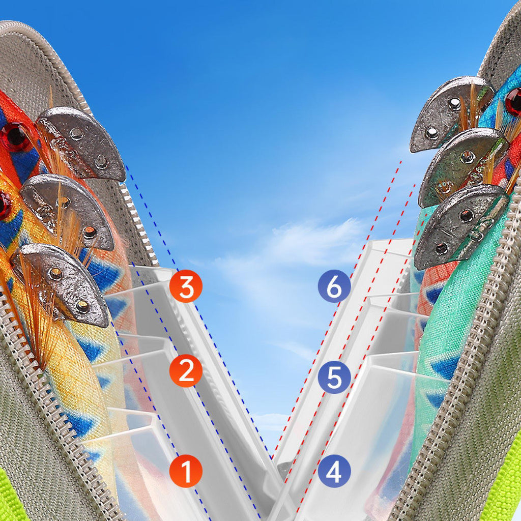 【Reliable and Smooth Zippers】: Fishing Squid Jig Storage Bag equipped with airtight double zippers that glide smoothly without jamming, offering convenient two way opening and enhanced durability with metal zipper construction