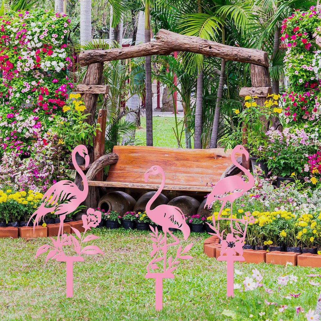 【Versatile Usage】: Ideal for decorating balconies, patios, lawns, yards, and other outdoor areas, as well as indoor space, flamingo garden decor serves as a festive accent during celebrations and can be used year round