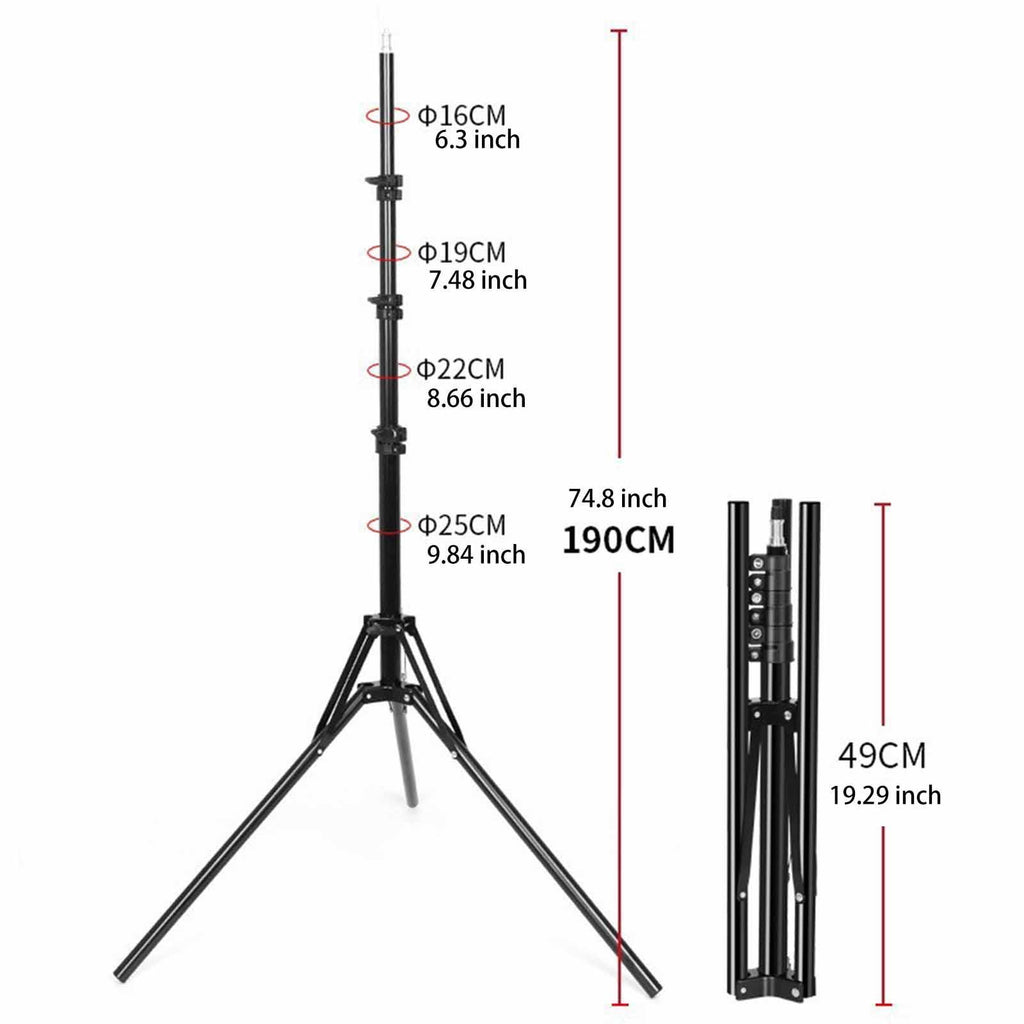 Adjustable Height: Extendable light stand, 4 Sections tripod, 80cm-190cm adjustable height to meet your various demands. Folded design, compact and easy to carry
