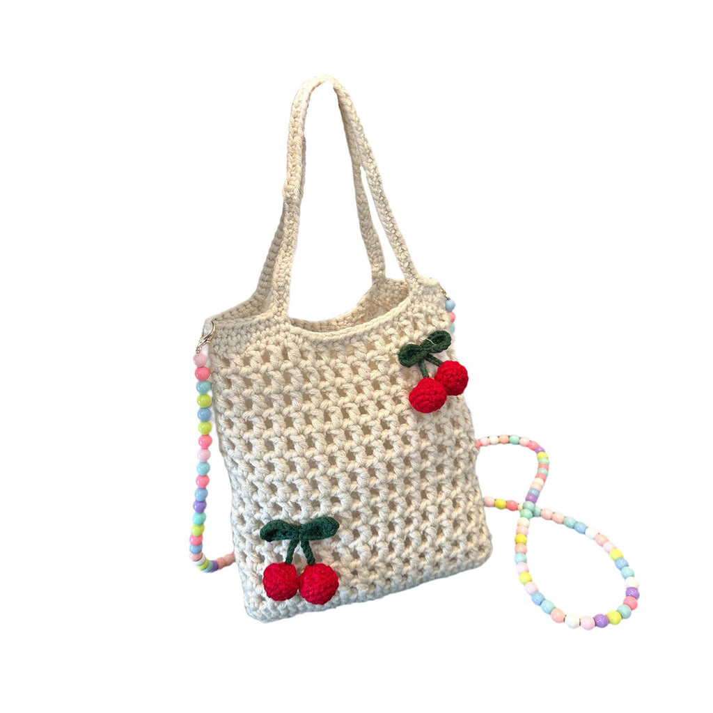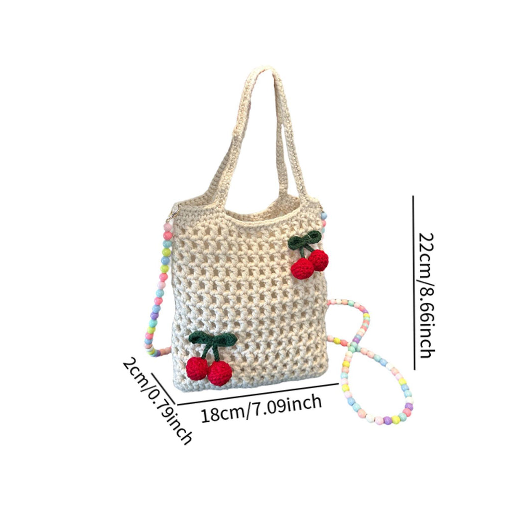 Maxbell Floral Crocheted Crossbody Bag Travel Working Ladies Gift Handwoven Tote Bag cherry