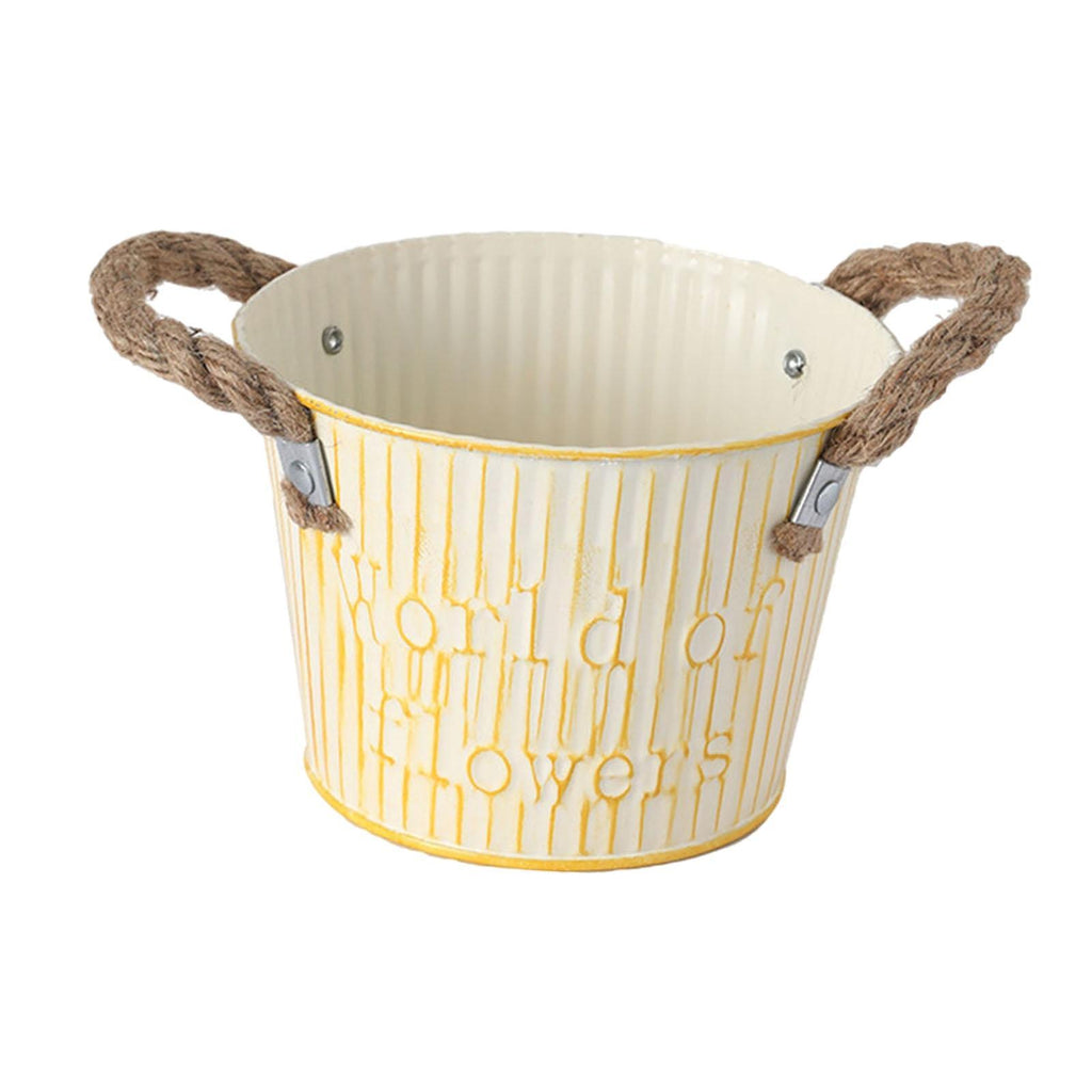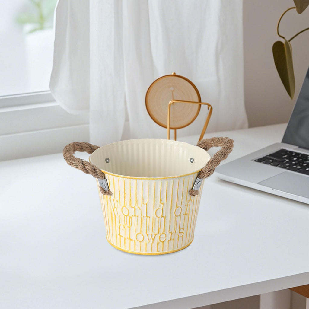 Maxbell Flower Bucket with Handles Planter for Balcony Restaurant Indoor Outdoor Use Beige