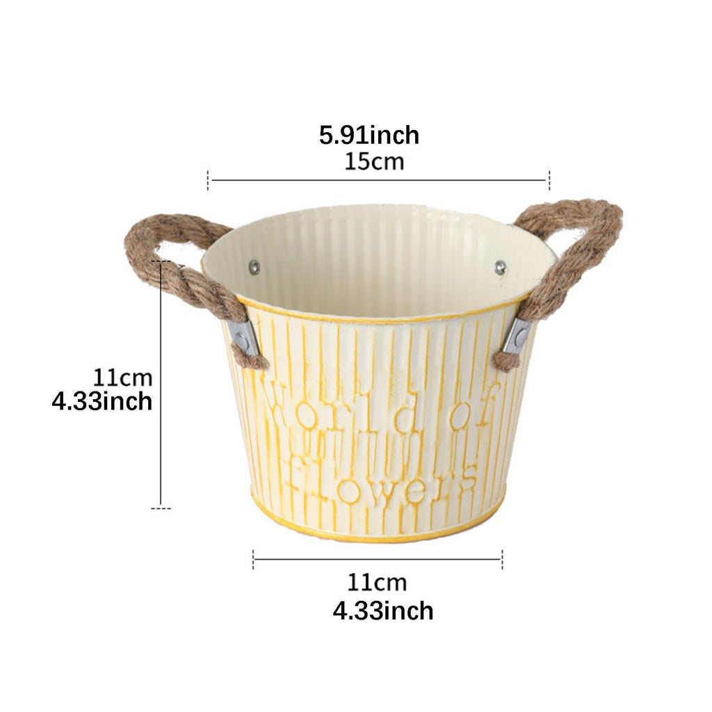 【Vintage Design】: Crafted from quality cold rolled iron, this vintage metal flower bucket boasts high hardness and resistance to deformation, ensuring long durability. Its classic coated metal finish and simple rustic design exude a strong nostalgic charm that seamlessly blends with various home decor styles