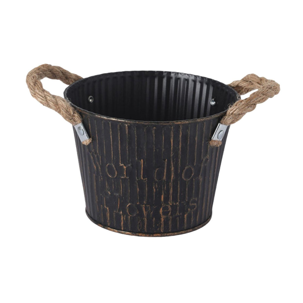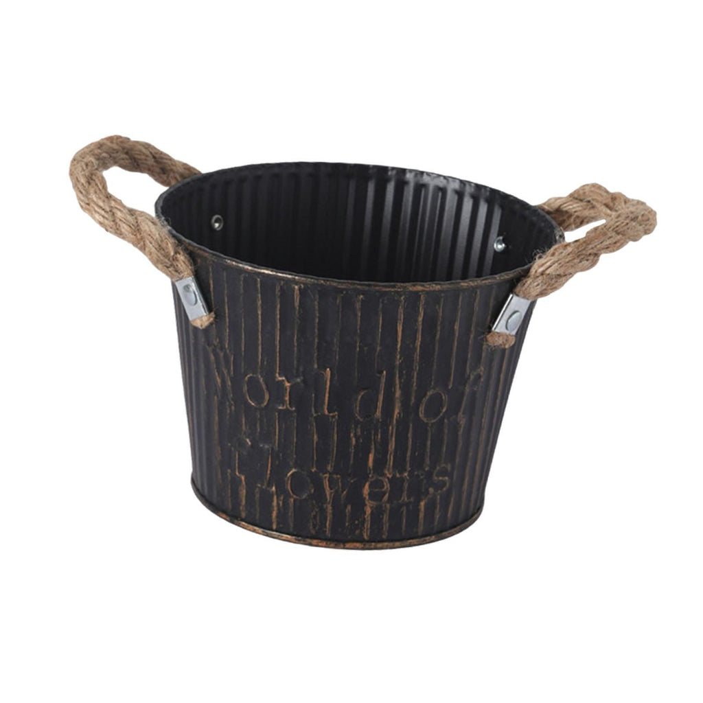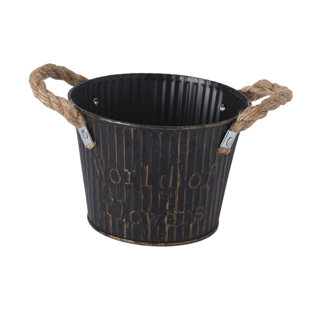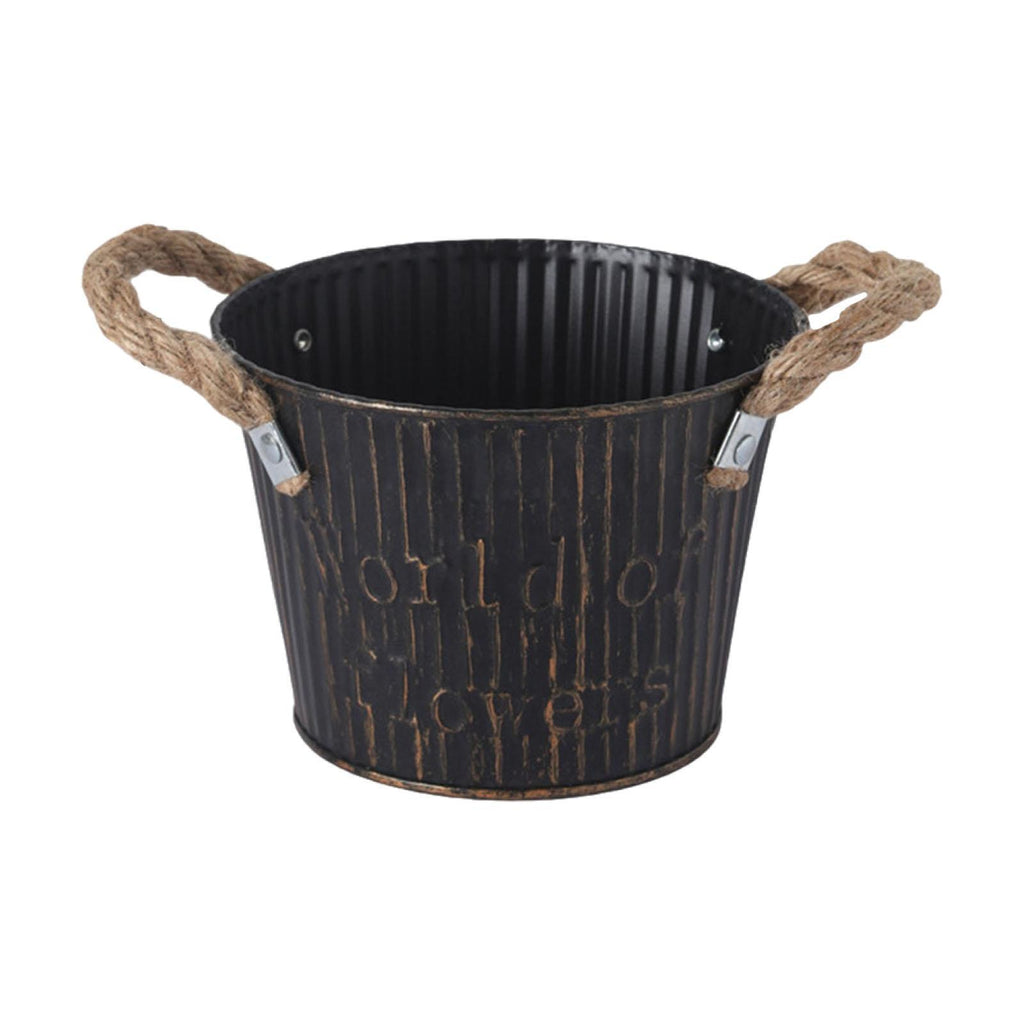 Maxbell Flower Bucket with Handles Planter for Balcony Restaurant Indoor Outdoor Use Black