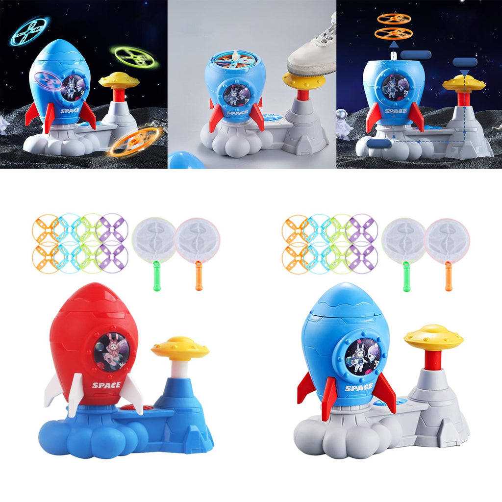 【How to Play】: Just put the flying disc into the launcher, then stomp to launch in the air, kids try to catching these disc. All accessories included.