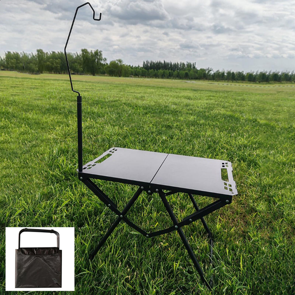 Maxbell Foldable Camping Table Black Grill Table for Backyard Outdoor Cooking Travel with Light Stand