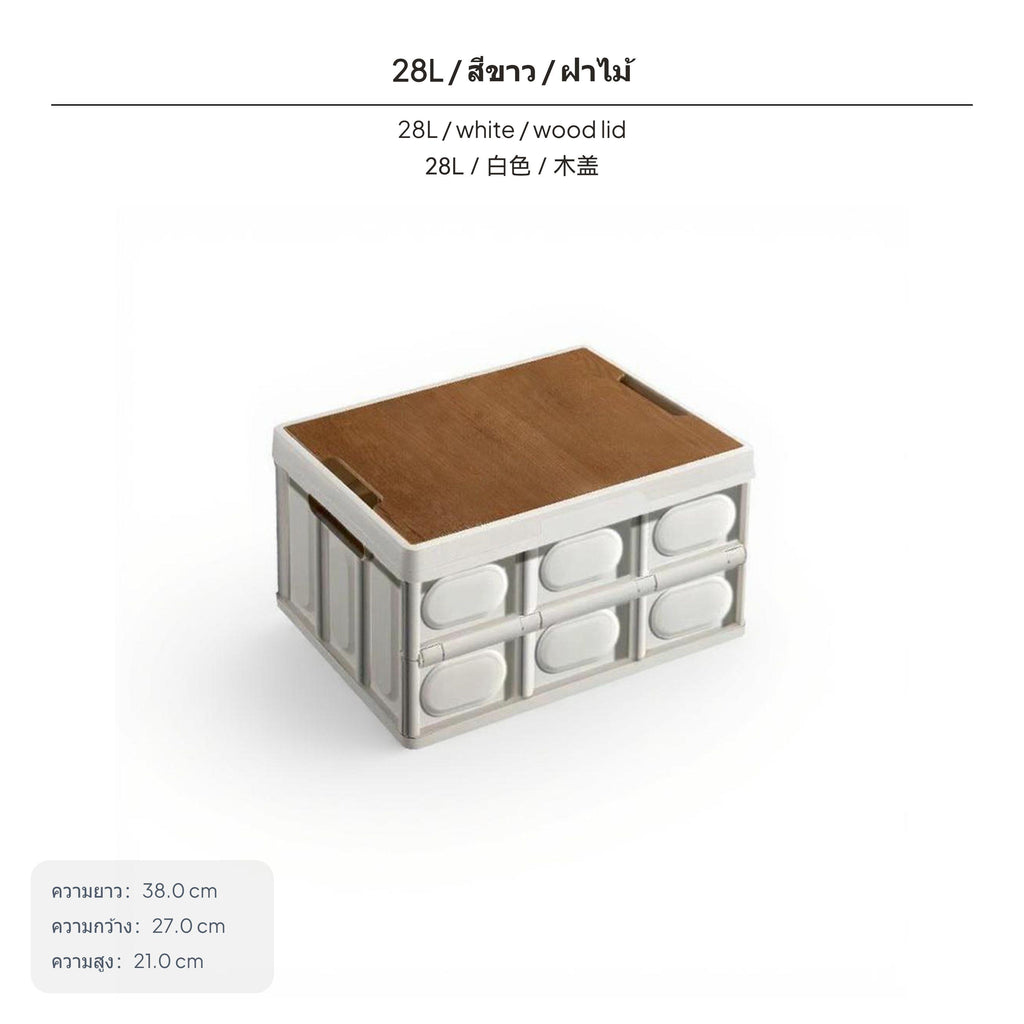 [Foldable and Space-Saving] This innovative outdoor storage box features a foldable design, reducing to just 7cm or 10cm in height when folded, making storage and transportation easy.[adaptable Capacity choices] Available in multiple sizes (28L, 35L, 40L, 55L, 60L, 75L), this storage box meets a variety of needs, whether for camping, picnics, or trunk organization.[Convenient Multi-Functionality] Equipped with a wooden lid that doubles as a small surface for outdoor activities and a threecompartment partition for efficient organization and easy retrieval.[sturdy and Protective Materials] Made of sturdy PP and wood, the box is water- and particlesresistant, ensuring your items remain protected and spotless in outdoor settings.[Stylish and Stackable Design] Featuring elegant color choices like ivory, tan, and cream, it complements various settings while allowing for stable upright layering to maximize space usage.Specification: