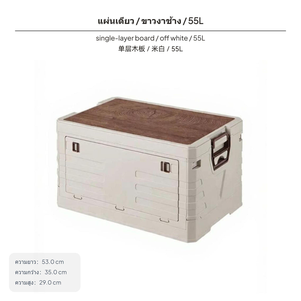 [Foldable and Space-Saving] This innovative outdoor storage box features a foldable design, reducing to just 7cm or 10cm in height when folded, making storage and transportation easy.[adaptable Capacity choices] Available in multiple sizes (28L, 35L, 40L, 55L, 60L, 75L), this storage box meets a variety of needs, whether for camping, picnics, or trunk organization.[Convenient Multi-Functionality] Equipped with a wooden lid that doubles as a small surface for outdoor activities and a threecompartment partition for efficient organization and easy retrieval.[sturdy and Protective Materials] Made of sturdy PP and wood, the box is water- and particlesresistant, ensuring your items remain protected and spotless in outdoor settings.[Stylish and Stackable Design] Featuring elegant color choices like ivory, tan, and cream, it complements various settings while allowing for stable upright layering to maximize space usage.Specification: