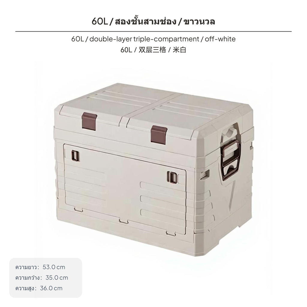 [Foldable and Space-Saving] This innovative outdoor storage box features a foldable design, reducing to just 7cm or 10cm in height when folded, making storage and transportation easy.[adaptable Capacity choices] Available in multiple sizes (28L, 35L, 40L, 55L, 60L, 75L), this storage box meets a variety of needs, whether for camping, picnics, or trunk organization.[Convenient Multi-Functionality] Equipped with a wooden lid that doubles as a small surface for outdoor activities and a threecompartment partition for efficient organization and easy retrieval.[sturdy and Protective Materials] Made of sturdy PP and wood, the box is water- and particlesresistant, ensuring your items remain protected and spotless in outdoor settings.[Stylish and Stackable Design] Featuring elegant color choices like ivory, tan, and cream, it complements various settings while allowing for stable upright layering to maximize space usage.Specification: