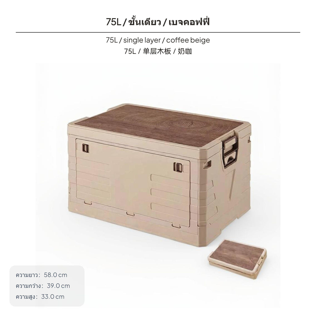 [Foldable and Space-Saving] This innovative outdoor storage box features a foldable design, reducing to just 7cm or 10cm in height when folded, making storage and transportation easy.[adaptable Capacity choices] Available in multiple sizes (28L, 35L, 40L, 55L, 60L, 75L), this storage box meets a variety of needs, whether for camping, picnics, or trunk organization.[Convenient Multi-Functionality] Equipped with a wooden lid that doubles as a small surface for outdoor activities and a threecompartment partition for efficient organization and easy retrieval.[sturdy and Protective Materials] Made of sturdy PP and wood, the box is water- and particlesresistant, ensuring your items remain protected and spotless in outdoor settings.[Stylish and Stackable Design] Featuring elegant color choices like ivory, tan, and cream, it complements various settings while allowing for stable upright layering to maximize space usage.Specification: