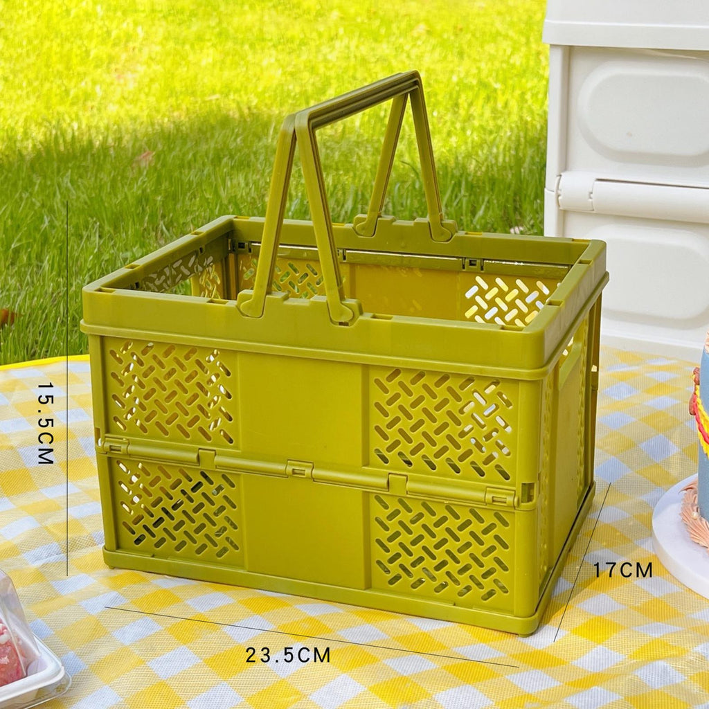 Maxbell Foldable Picnic Basket Medium Shopping Basket for Barbecue Household Outdoor Green