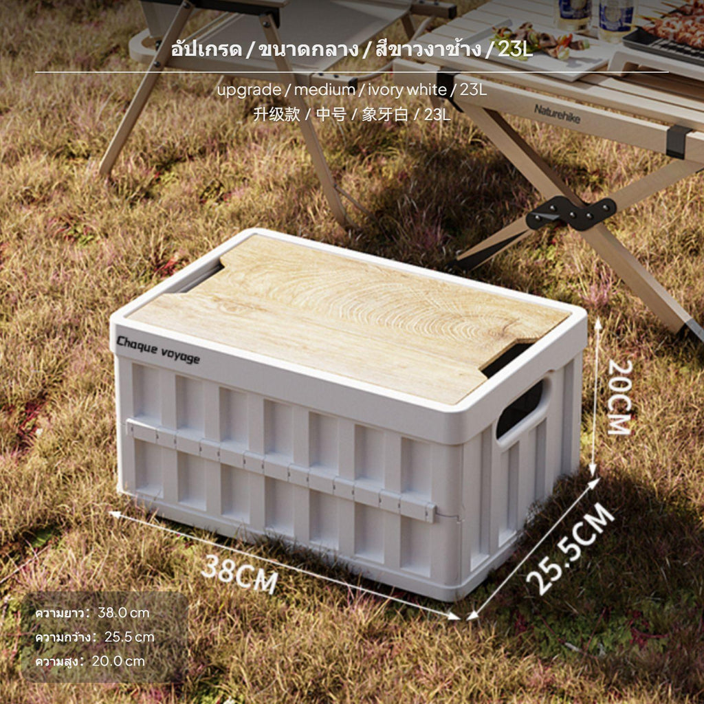 [space-saving Foldable Design] This innovative foldable storage box is designed for versatility, offering a sleek solution for outdoor, car, and home organization. When folded, it achieves a minimal thickness of just 3.25CM, maximizing portability and space optimization.[sturdy PP Material] Constructed from robust PP material, the storage box ensures a dependable and protected place for your items, whether in the car's rear storage area, at a campsite, or inside your home.[multipurpose Wooden-Look Lid] The elegant wood-patterned lid is not only aesthetically pleasing but also serves as a practical surface cover for beverages, snacks, or a barbecue setup, enhancing convenience in various scenarios.[Multiple Sizes hues] Available in 23L, 35L, and 62L capacities and two color choices ivory ivory cream and China red - to suit different storage needs and individual styles.[simple Mobility & Stackable Design] Equipped with side handles for easy carrying and a stackable design, this box optimizes upright storage space, making it a perfect assistant for your day-to-day organization tasks.