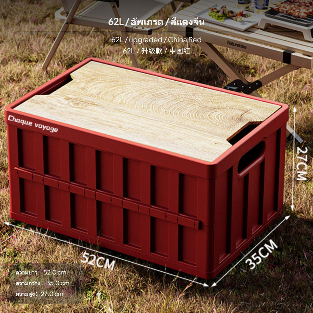 [space-saving Foldable Design] This innovative foldable storage box is designed for versatility, offering a sleek solution for outdoor, car, and home organization. When folded, it achieves a minimal thickness of just 3.25CM, maximizing portability and space optimization.[sturdy PP Material] Constructed from robust PP material, the storage box ensures a dependable and protected place for your items, whether in the car's rear storage area, at a campsite, or inside your home.[multipurpose Wooden-Look Lid] The elegant wood-patterned lid is not only aesthetically pleasing but also serves as a practical surface cover for beverages, snacks, or a barbecue setup, enhancing convenience in various scenarios.[Multiple Sizes hues] Available in 23L, 35L, and 62L capacities and two color choices ivory ivory cream and China red - to suit different storage needs and individual styles.[simple Mobility & Stackable Design] Equipped with side handles for easy carrying and a stackable design, this box optimizes upright storage space, making it a perfect assistant for your day-to-day organization tasks.
