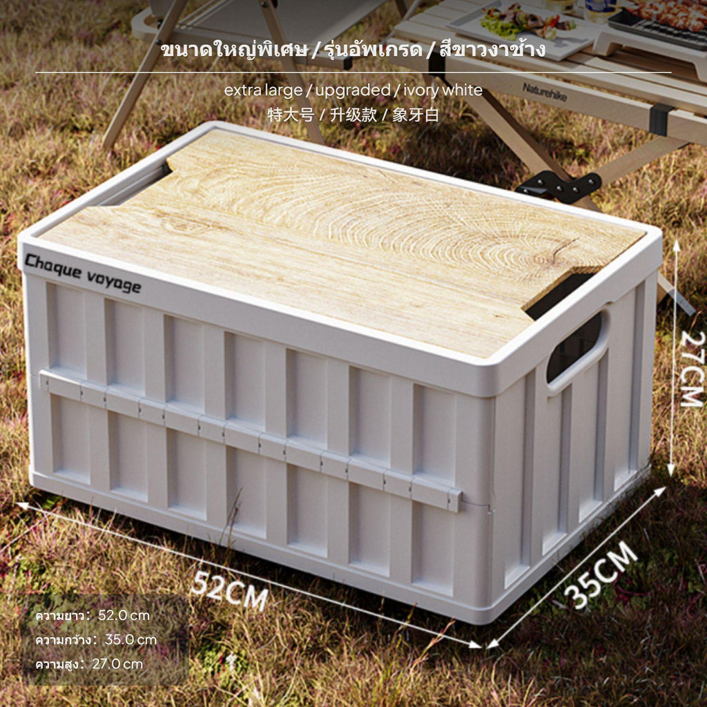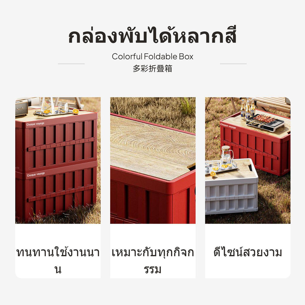 [space-saving Foldable Design] This innovative foldable storage box is designed for versatility, offering a sleek solution for outdoor, car, and home organization. When folded, it achieves a minimal thickness of just 3.25CM, maximizing portability and space optimization.[sturdy PP Material] Constructed from robust PP material, the storage box ensures a dependable and protected place for your items, whether in the car's rear storage area, at a campsite, or inside your home.[multipurpose Wooden-Look Lid] The elegant wood-patterned lid is not only aesthetically pleasing but also serves as a practical surface cover for beverages, snacks, or a barbecue setup, enhancing convenience in various scenarios.[Multiple Sizes hues] Available in 23L, 35L, and 62L capacities and two color choices ivory ivory cream and China red - to suit different storage needs and individual styles.[simple Mobility & Stackable Design] Equipped with side handles for easy carrying and a stackable design, this box optimizes upright storage space, making it a perfect assistant for your day-to-day organization tasks.