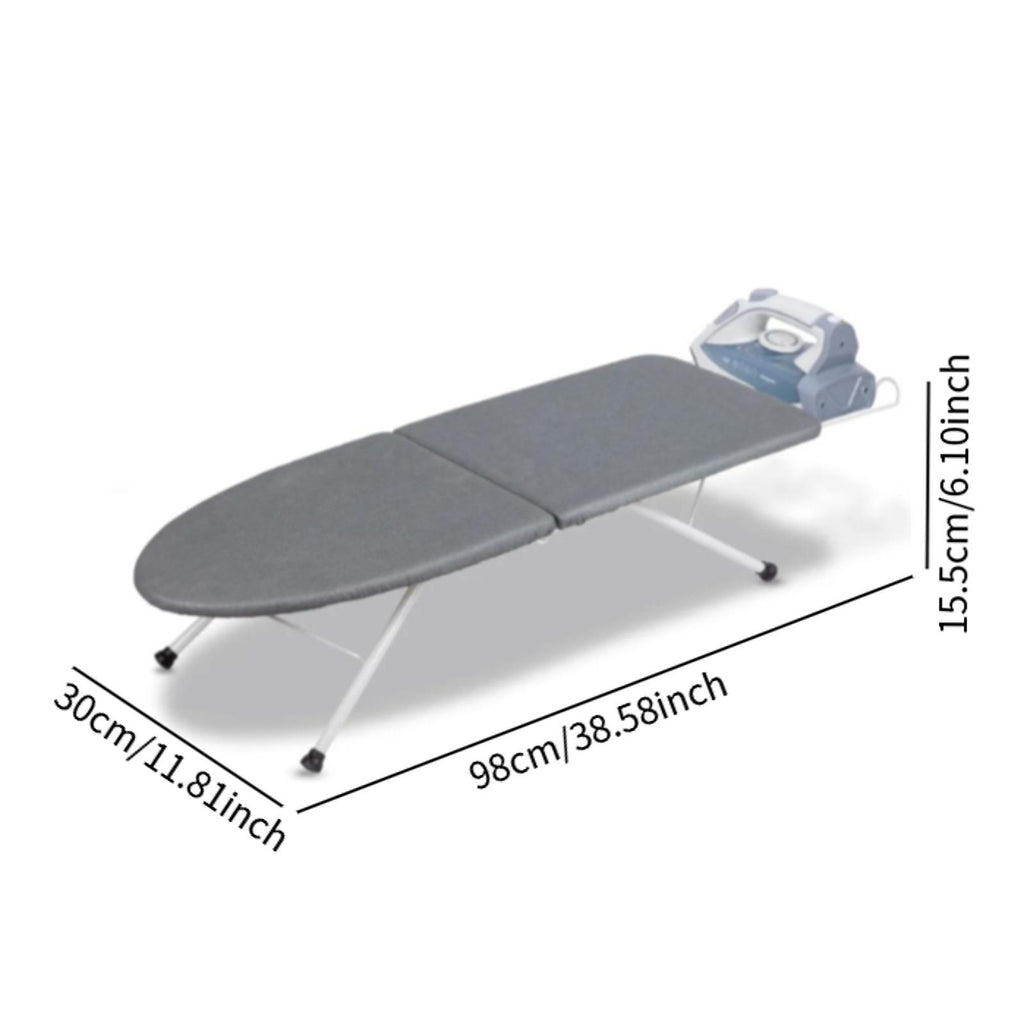 【Tabletop Ironing Board】: This table top ironing board small measures 98cmx30cmx15.5cm/38.58inchx11.81inchx6.10inch when opened and 41cmx30cmx7.5cm/16.14inchx11.81inchx2.95inch when folded; The set also includes iron holder, made of carbon steel material ; It's sturdy and for years of use