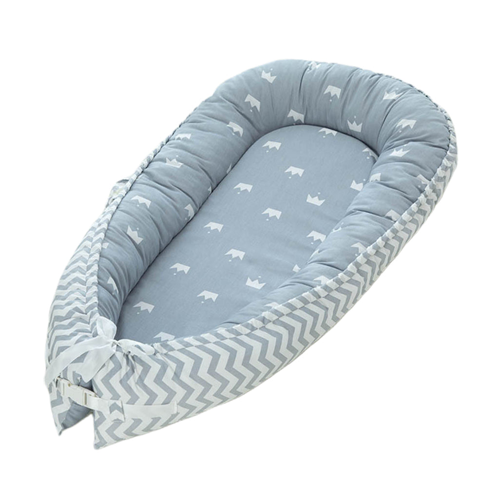Max Foldable Travel Crib Baby Cotton Sleeping Baby Bassinet Bed b Crown_Blue