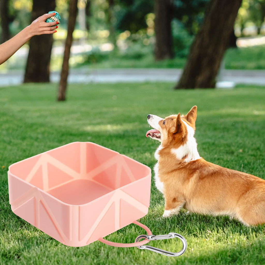 - 【Application】This folding pet bowl features a compact foldable design with an elastic silicone strap for easy storage. Attach it to backpacks, belts, leashes, or keep it in your car—ideal for travel, hiking, camping, and outdoor adventures