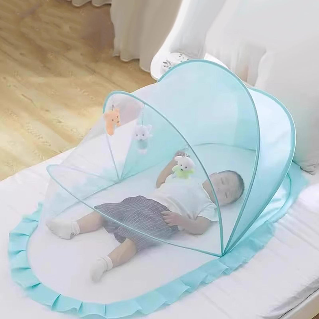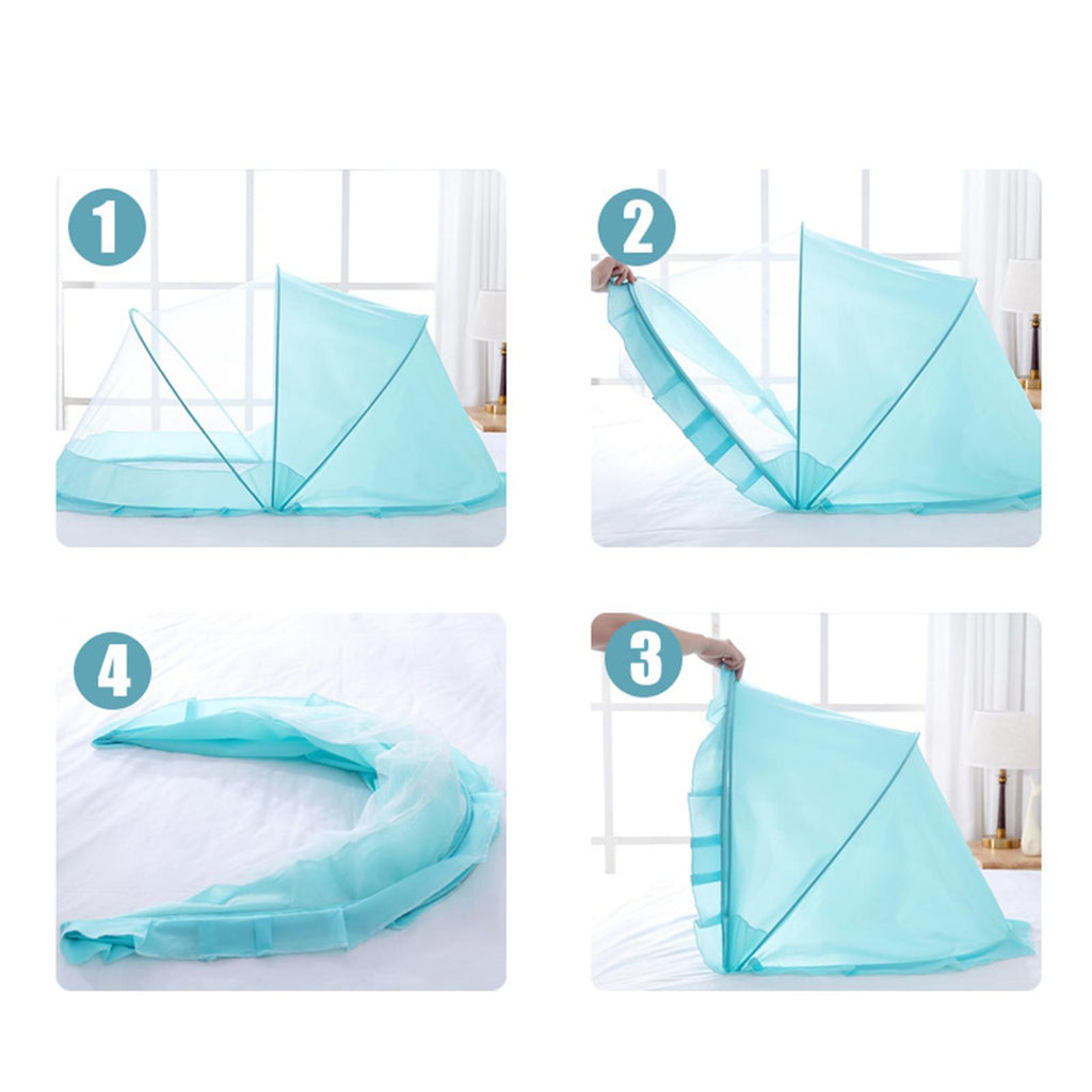 Maxbell Folding Baby Bed Netting Bedding Cute Protective Net for Infant Decor Travel Blue