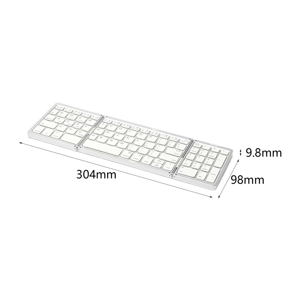 【Product Dimensions】: When unfolded, the keyboard measures 304*98*9.8mm, making it suitable for typing on a tablet or phone. When folded, it becomes compact at 152*98*19.8mm, making it easy to carry around.
