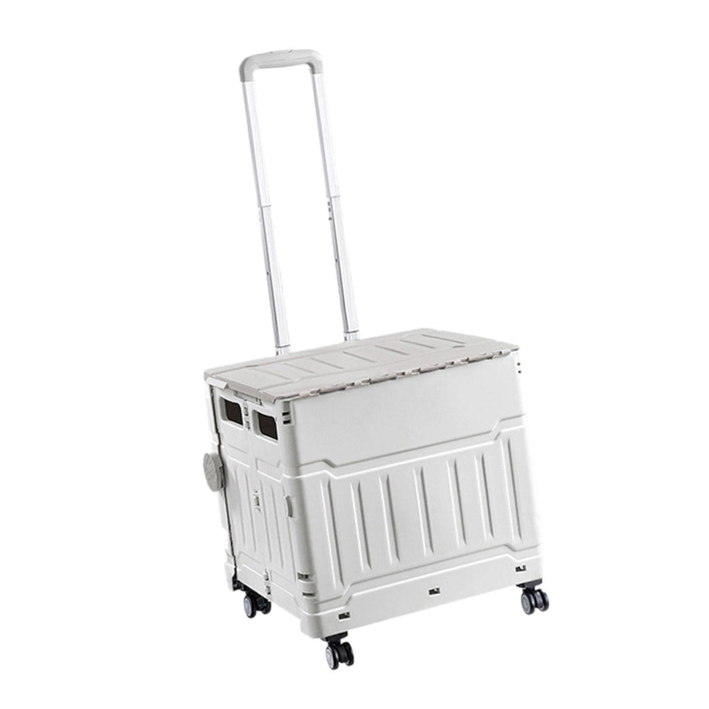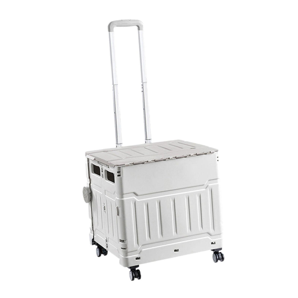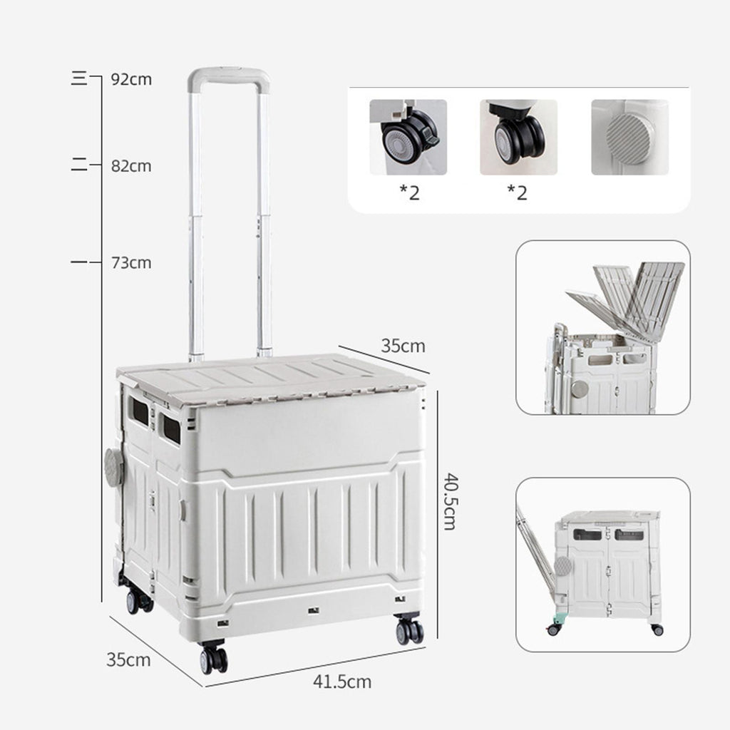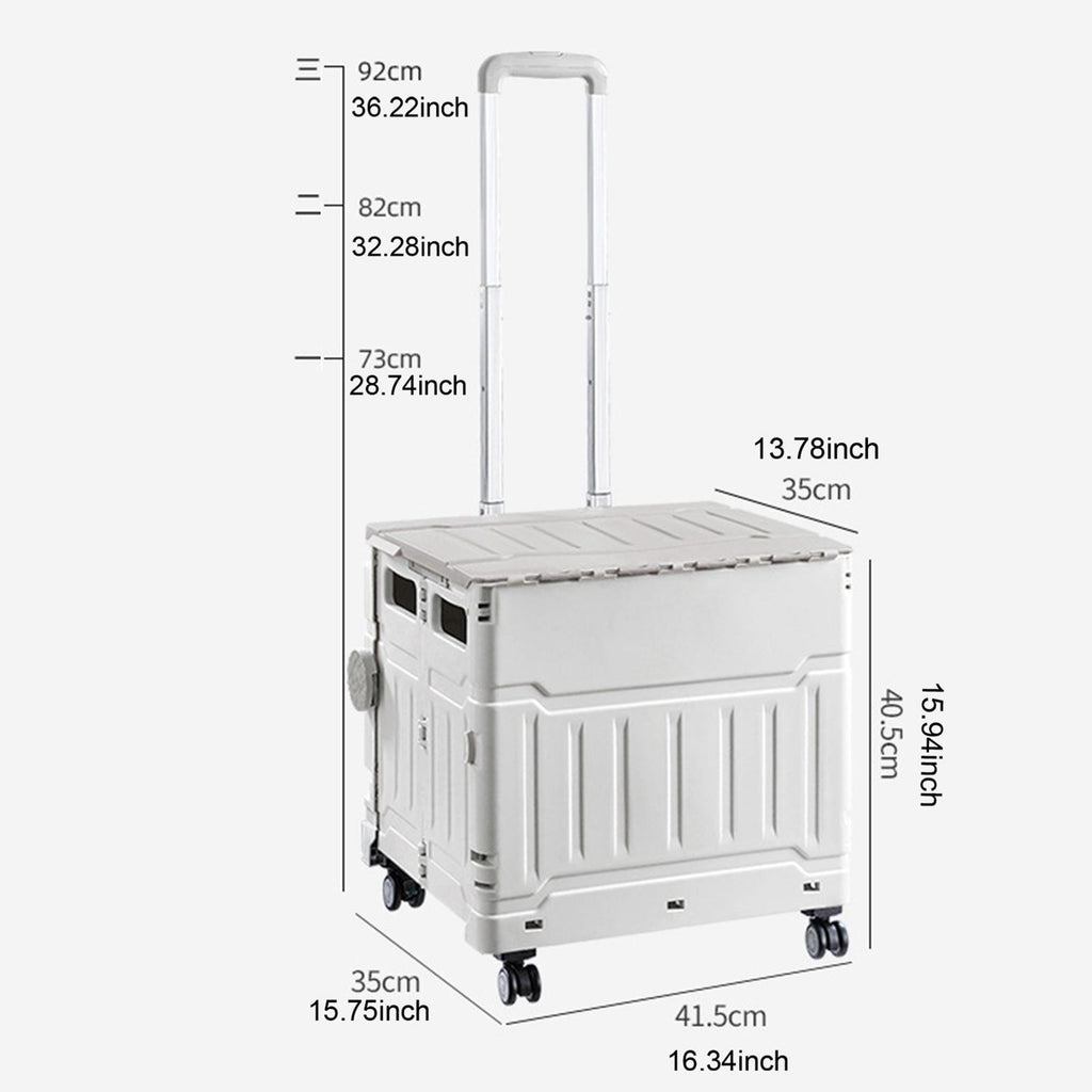 【Multifunctional Shopping Cart】: This compact and versatile shopping cart is great for various uses such as grocery shopping, outdoor camping, fetching parcels, and even as a rest seat. It's designed to be pulled at an angle for easy maneuverability.