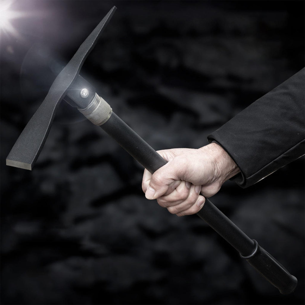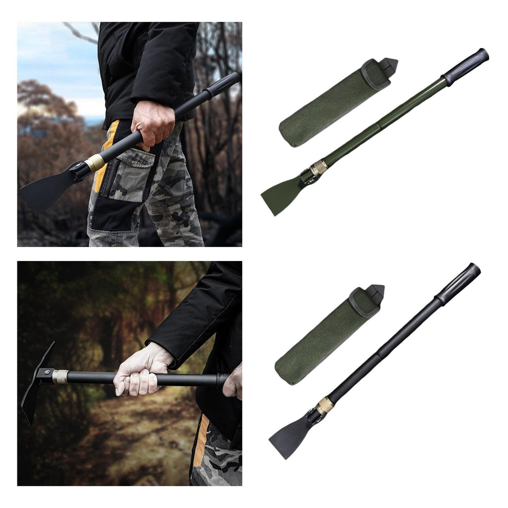 Folding, small size and easy to carry. At the end is a shovel and a pickaxe.