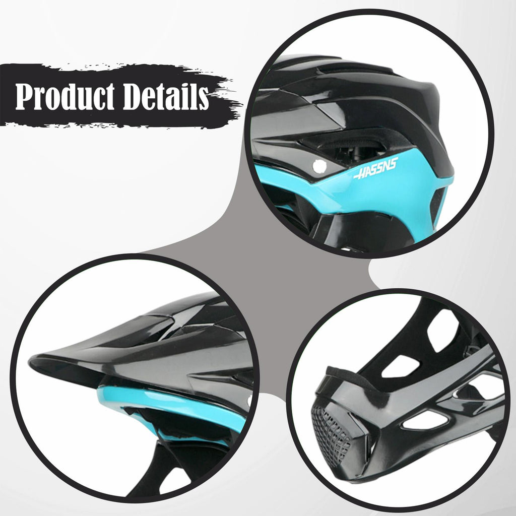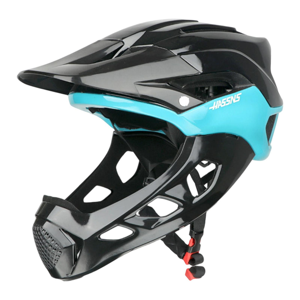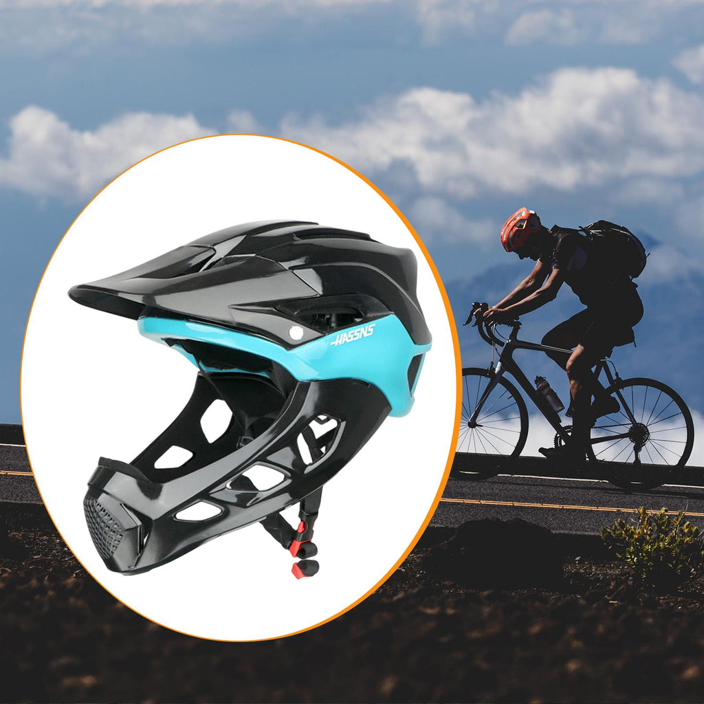 Full Face Bike Helmet Portable Bicycle Helmet for Outdoor Cycling Skateboard Black Blue