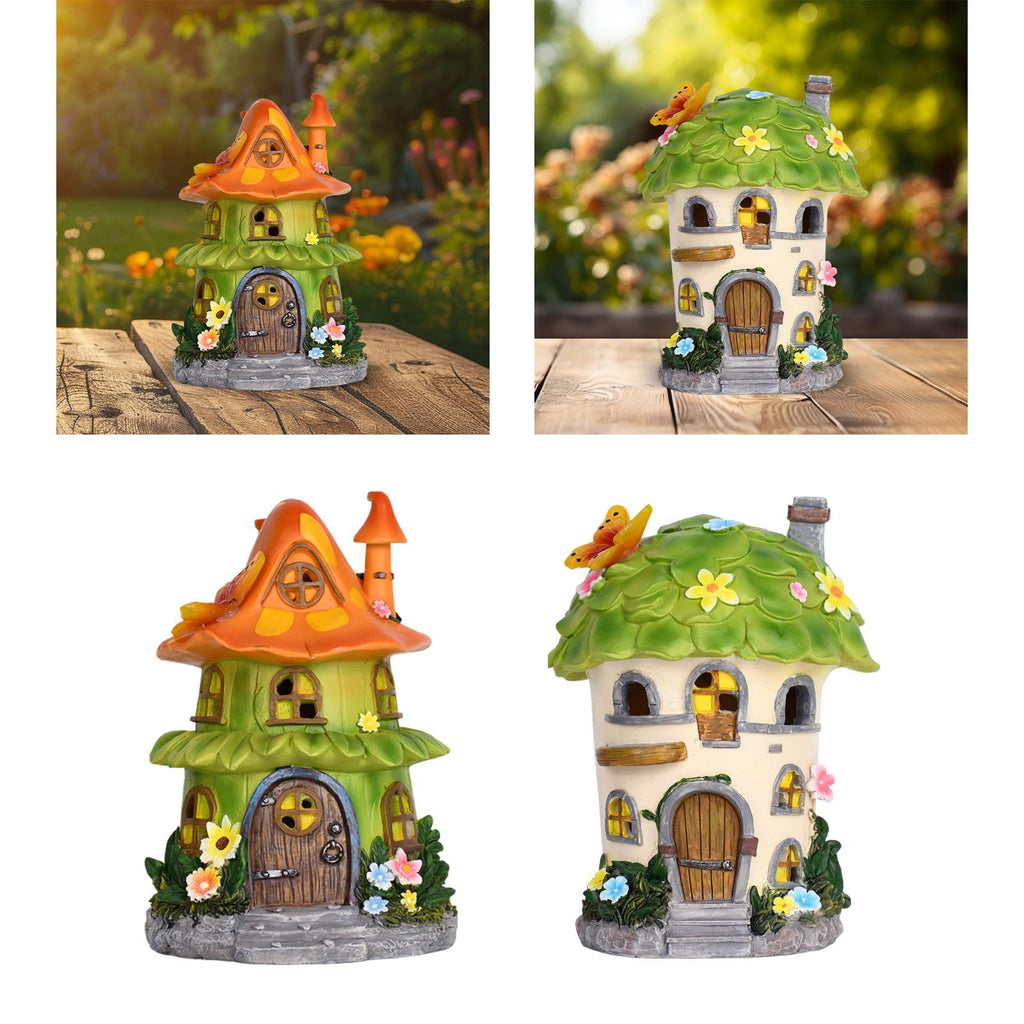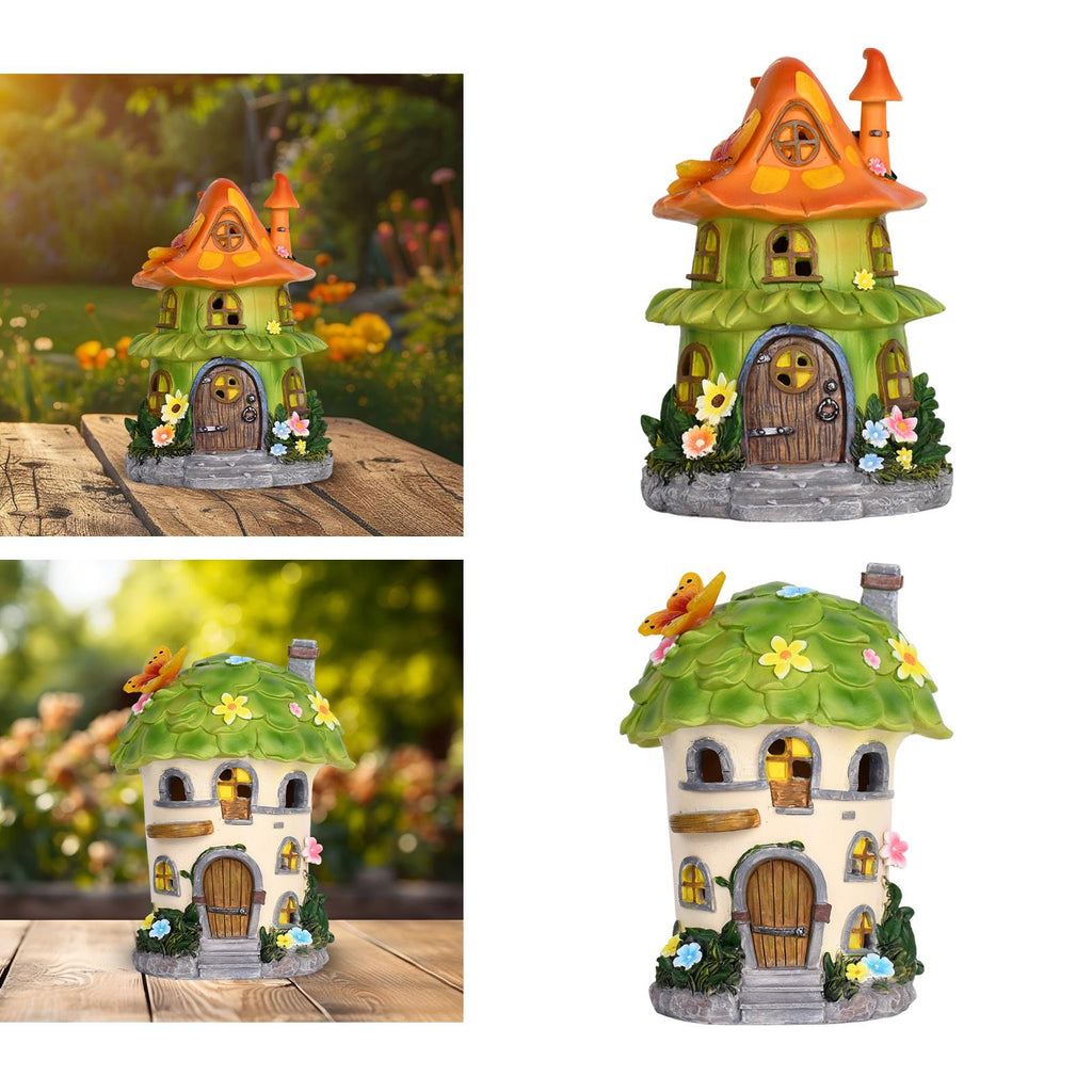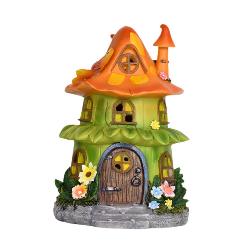 Maxbell Garden Flower House Statue Landscape Solar Sculpture for Patio Outdoor Porch Orange