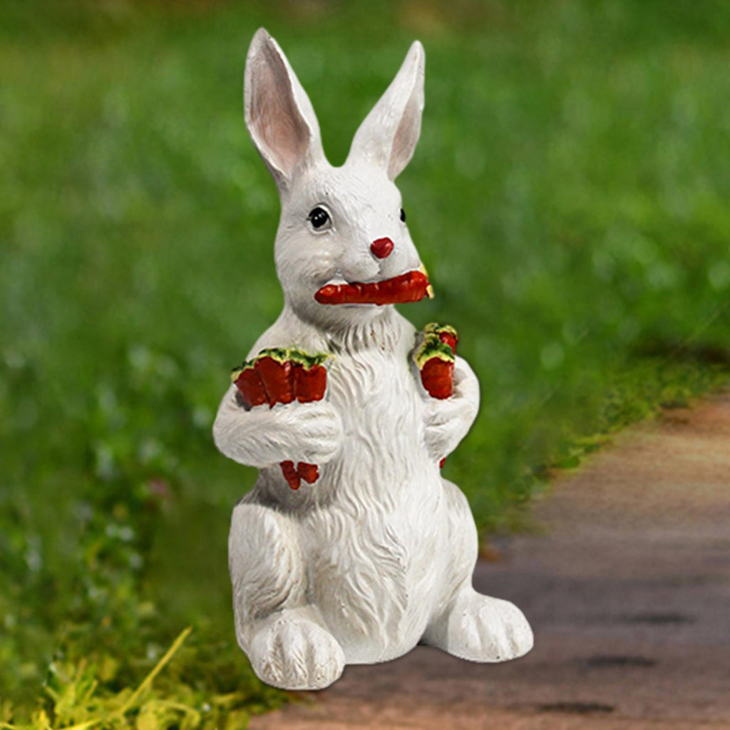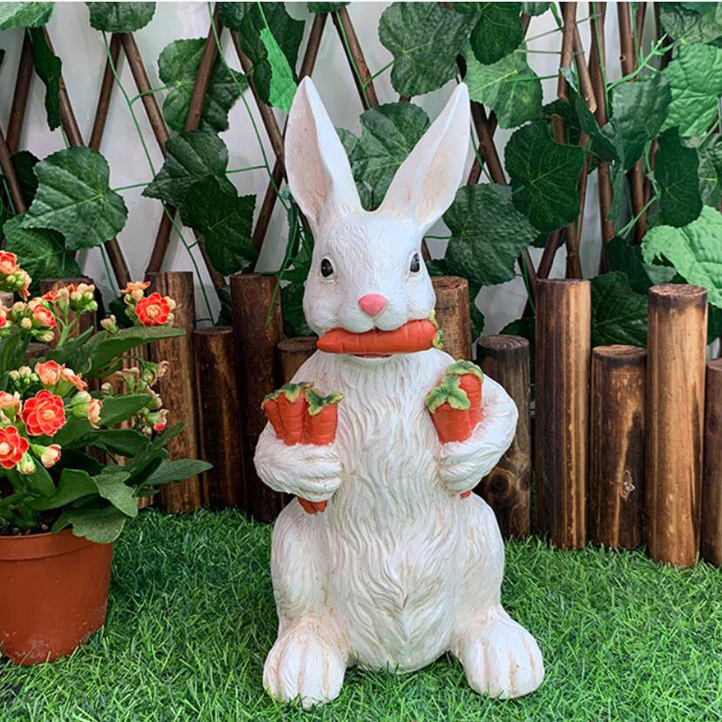 【Garden Sculpture】Rabbit holding carrots garden statue with detailed carvings and beautiful colors, decorative and creative.