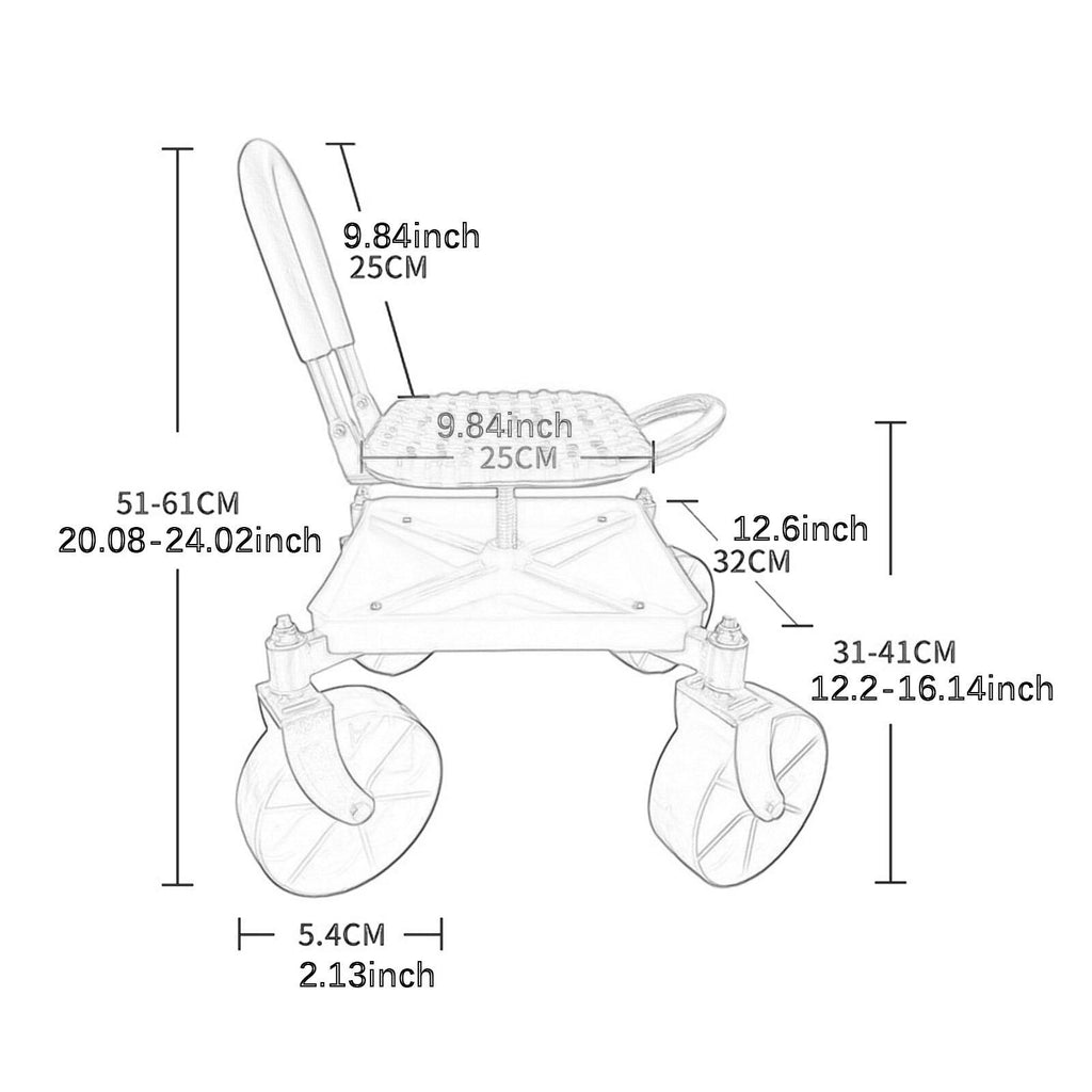 【360 Degree Rotation Seat】Garden cart seat with 360 degree rotated movement that allows you to rotate completely during the work, making it easier to reach different areas without having to stand up or move the stool
