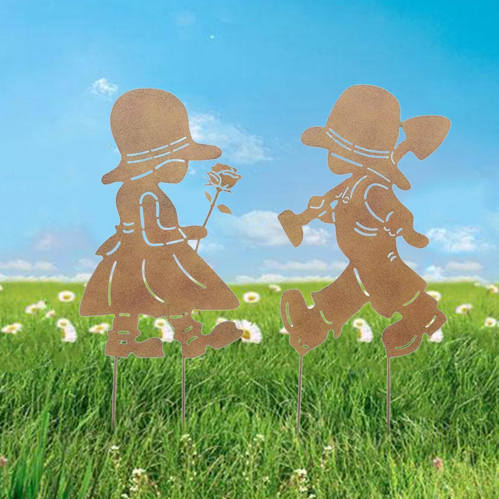 Maxbell Garden Stakes Creative Decorations Boy Girl Silhouette for Lawn Yard Outdoor